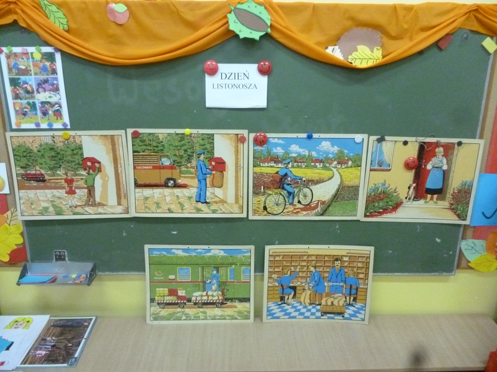 Podstawa programowa wychowania przedszkolnego zaleca budowanie dziecięcej wiedzy o świecie społecznym. Dziecko powinno znać ważniejsze instytucje i orientować się w rolach społecznych pełnionych przez ważne osoby. Z okazji Dnia Poczty Polskiej przedszkolaki spotkały się z listonoszem, który zapoznał ich ze swoimi obowiązkami. Dzieci w ramach wdzięczności wykonały laurki dla zaproszonego listonosza oraz dla pracowników zatrudnionych na poczcie w Kornowacu. Dzieci wyszły również na spacer szukać skrzynek pocztowych. Na spacerze spotkały roznoszącą pocztę panią Krysię i spontanicznie wręczyły jej bukiety z jesiennych liści, dziękując w ten sposób za jej potrzebną i niełatwą pracę. Była to znakomita okazja do wyrażenia szacunku i wdzięczności naszej pani listonosz za jej sumienną pracę i serdeczny uśmiech. Wszystkim listonoszom życzymy dużo zdrowia, sił i zadowolenia z wykonywanej pracy.