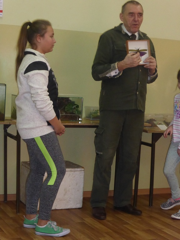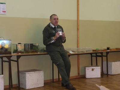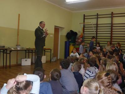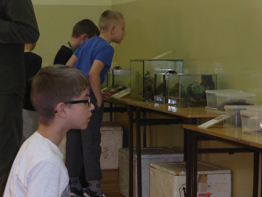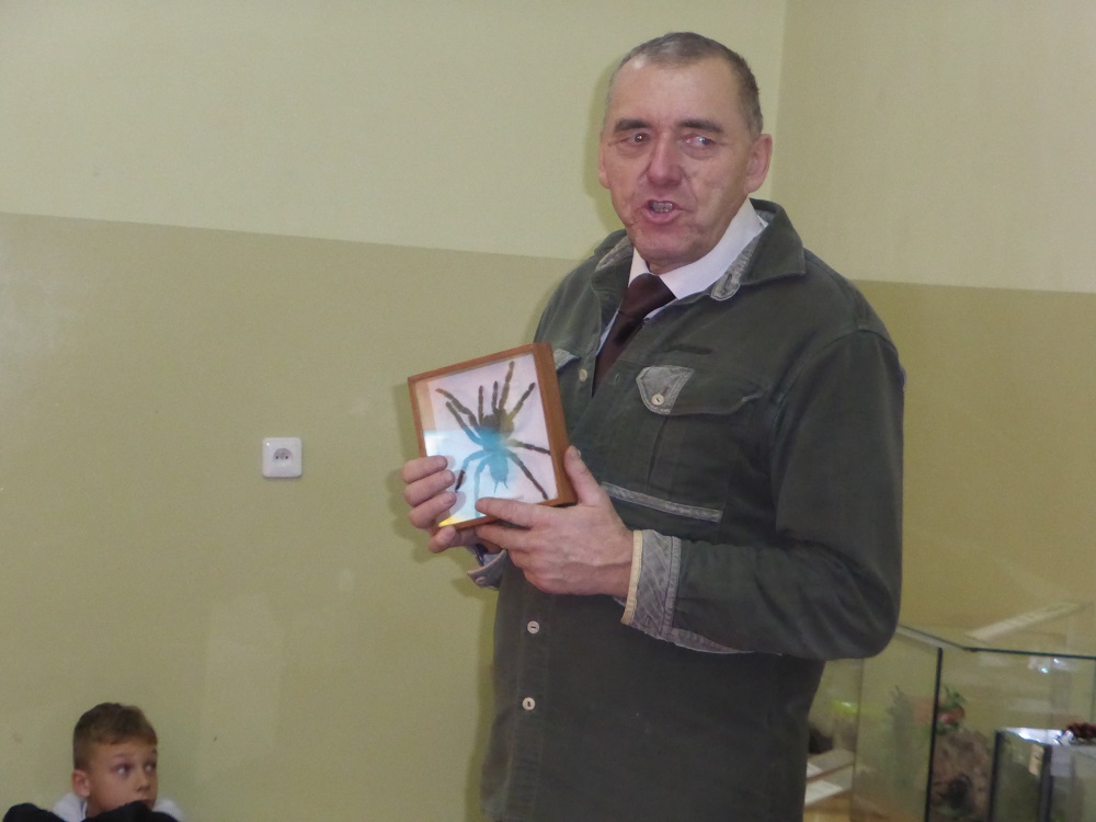 Naszą szkołę już po raz trzeci odwiedził pasjonat i hodowca zwierząt pan Andrzej Pająk. Tym razem tematem spotkania były pająki. Dzieci z zainteresowaniem wysłuchały opowieści o ich życiu. Dowiedzieliśmy się, jak się odżywiają, rozmnażają, gdzie żyją. Hodowla tych zwierząt nie jest łatwa. Największą atrakcją było jednak to, że dzieci mogły pooglądać żywe okazy, a niektóre nawet dotknąć. Pan Andrzej uświadomił uczniom, że pająki potrafią być bardzo niebezpieczne, a jad niektórych jest śmiertelny. Była to niecodzienna lekcja przyrody ubarwiona ciekawostkami i anegdotami o życiu tych zwierząt. Sponsorem spotkania z panem Pająkiem byli sympatycy górnictwa obecni na akademii środowiskowej z okazji „Barbórki”.
