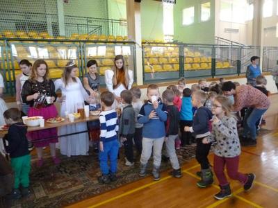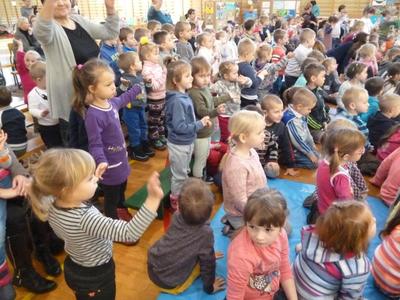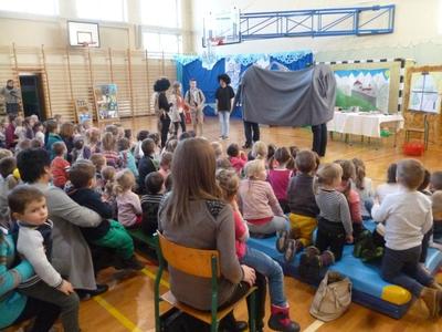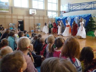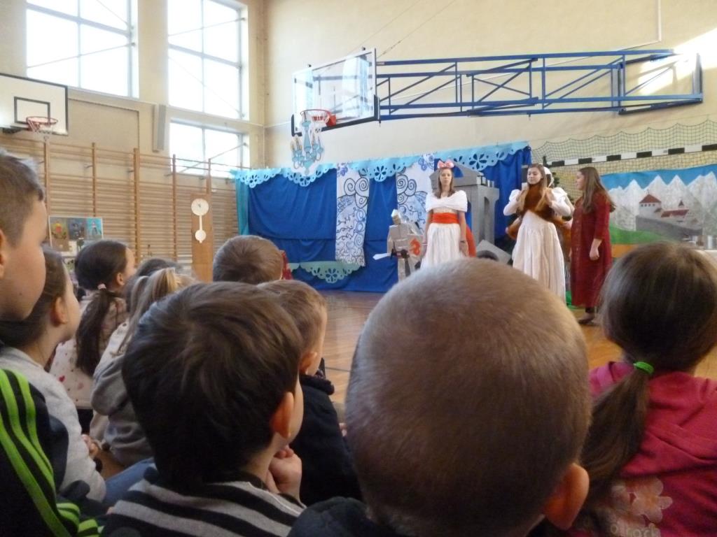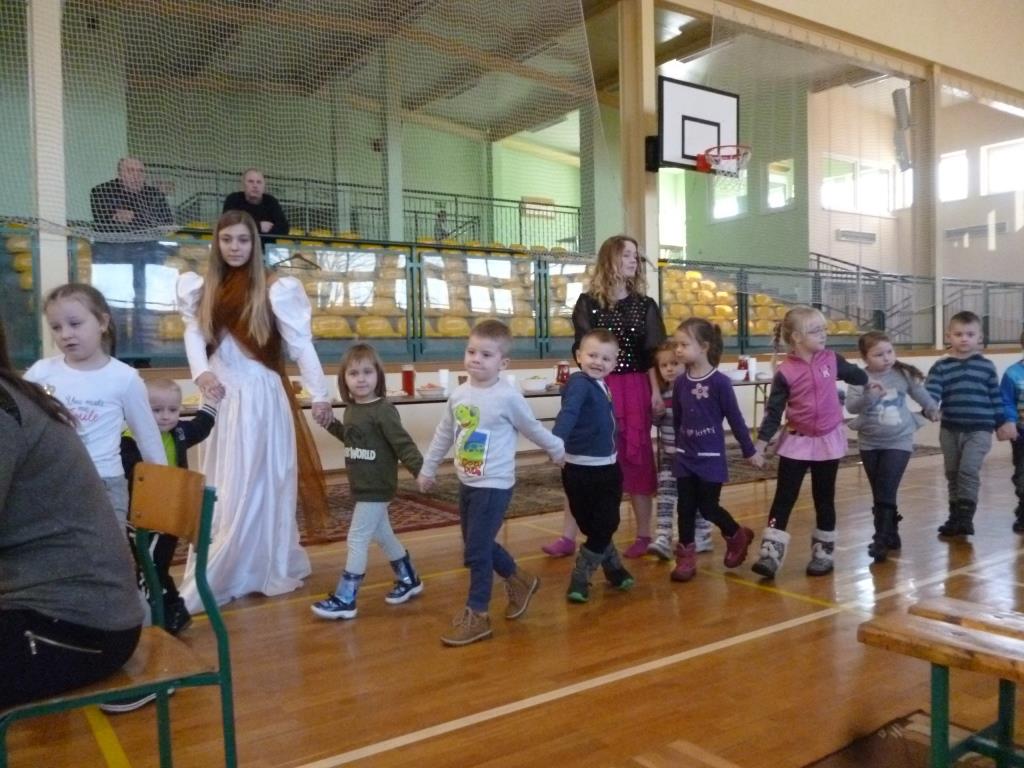 11 stycznia przedszkolaki z Rzuchowa wybrały się na bajkowe spotkanie do Gimnazjum im. Jana Pawła II w Kornowacu. Na pięknie udekorowanej sali gimnastycznej wraz z dziećmi z innych przedszkoli obejrzeliśmy przedstawienie pt: „Kopciuszek” oraz jedną scenę z książki „W pustyni i w puszczy”. Uczniowie gimnazjum pięknie zaprezentowali swoje umiejętności teatralne i wokalne. Dzieci z zachwytem obserwowały akcje tocząca się na scenie. Po przedstawieniu przedszkolaki zwiedziły budynek szkoły oraz wzięły udział w zabawach zorganizowanych przez uczniów gimnazjum. Było malowanie twarzy, odrysowanie rączek, wspólne tańce oraz oglądanie prac plastycznych wykonanych przez starszych kolegów. Nie obyło się także bez słodkiego poczęstunku. Wszystkim dzieciom bardzo podobało się bajkowe spotkanie w gimnazjum i na pewno pozostanie ono na długo w naszej pamięci.