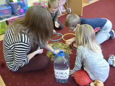 Jak każdego roku nasze przedszkole uczestniczyło w akcji „Góra Grosza”. Celem akcji jest zebranie funduszy na pomoc dzieciom wychowującym się poza własną rodziną, w tym na tworzenie takich programów, które pozwolą dzieciom wrócić do domu bądź tworzenie takich miejsc, które będą w miarę swoich możliwości zbliżone do domu rodzinnego oraz programów, które pozwolą im spokojnie dorastać. Efektem wychowawczym uczestnictwa przedszkola w akcji „Góra Grosza” jest uświadomienie dzieciom, że oddając chociażby jeden grosz, można zrealizować wielkie przedsięwzięcia na rzecz dzieci będących w trudnej sytuacji życiowej.