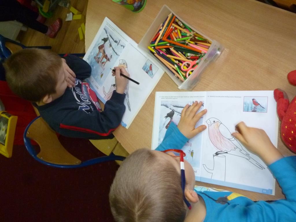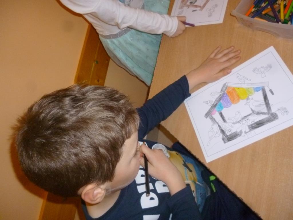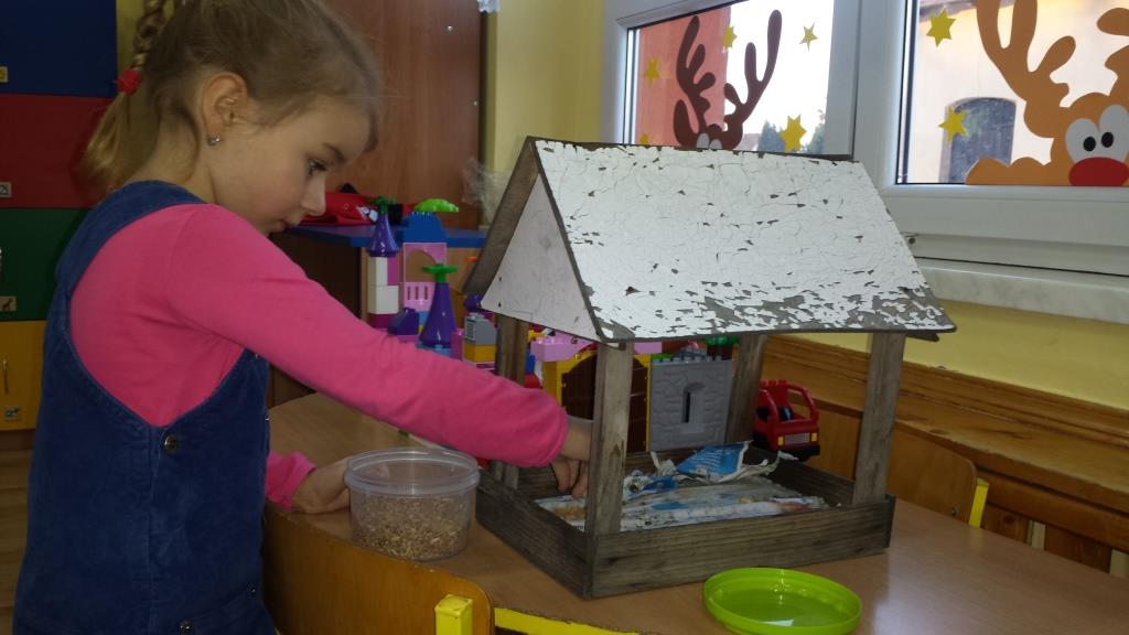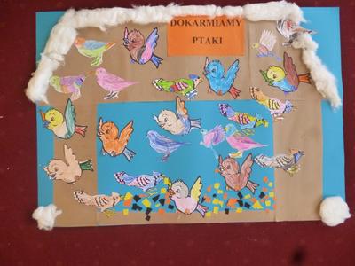 Zima jest dla ptaków bardzo ciężkim okresem, ze względu na niską temperaturę i trudne warunki pogodowe. W związku z tym często w naszym przedszkolu prowadzone są rozmowy z dziećmi na temat dbania o przyrodę, która nas otacza, w tym także o ptaki, którym ciężko jest znaleźć pożywienie zimą. W ramach zajęć przedszkolaki poznawały zwyczaje ptaków, oglądały filmy edukacyjne o ptakach, słuchały wierszy, wykonały plakat pt: ”Dokarmiamy ptaki” oraz wiele prac plastycznych związanych z naszymi ptasimi przyjaciółmi. A teraz codziennie dbają o to, żeby w karmniku nie zabrakło pożywienia dla ptaków. Mamy nadzieję, że dzięki takim działaniom uda nam się wykształcić u dzieci poczucie odpowiedzialności, obowiązkowości oraz wrażliwości na losy zwierząt.Marta Godawa