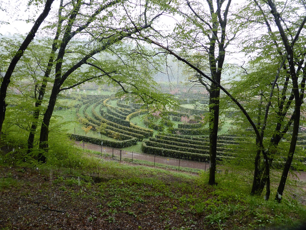 Jednak tym, co najbardziej zachwyciło małych przyrodników, był Zaczarowany Ogród. Gigantyczna, zadbana i przebogata w roślinność konstrukcja pięciopłatkowego kwiatu z alejkami i iglastymi labiryntami. Jego kształt podziwialiśmy z wysokiej skarpy, żałując że pogoda nie pozwala nam na pełne skorzystanie z jego uroków.