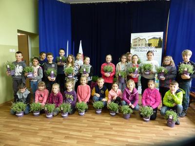 Na zakończenie prac wykonaliśmy pamiątkowe zdjęcia, a wszyscy uczestnicy otrzymali nagrody w postaci żywej, aromatycznej roślinki - lawendy.