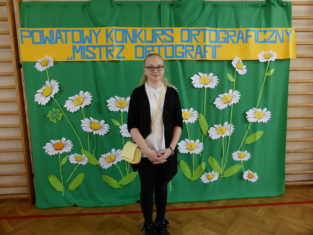 Naszą szkołę reprezentowała uczennica klasy szóstej Julia Primus, która została wytypowana do konkursu w drodze eliminacji szkolnych. W tym roku o tytuł „Szkolnego Mistrza Ortografii” zmagało się sześcioro uczniów z klas IV – VI. W rozgrywkach szkolnych najlepsza okazała się uczennica klasy VI – Julia Primus.