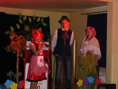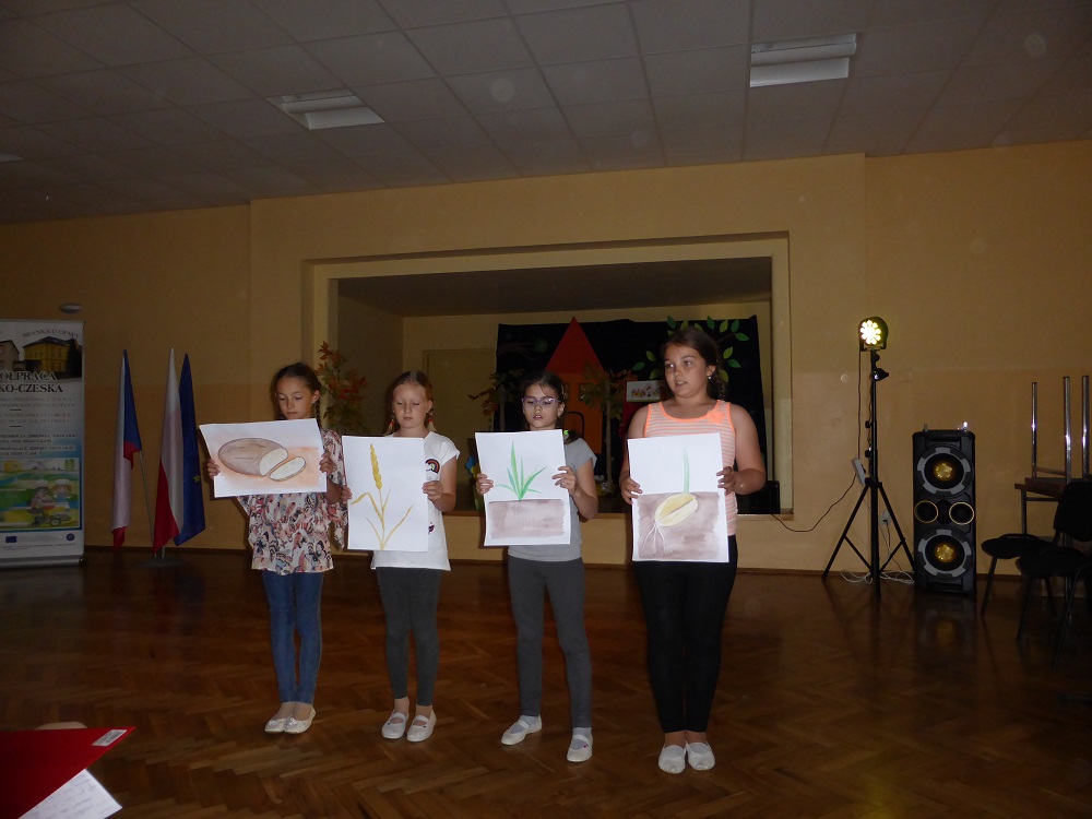 Po otwarciu spotkania przez Panią Dyrektor Wandę Knurę dzieci z Polski w pięknych strojach zakupionych w ramach projektu zaprezentowały inscenizację o tematyce ekologicznej "W bajkowym świecie ekobohaterów". Uczniowie z Branki u Opavy wystąpili przed publicznością w tańcu, piosence oraz krótkich scenkach o żywiołach i chlebie.