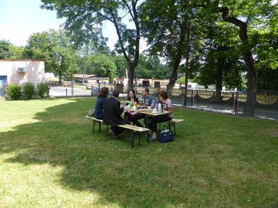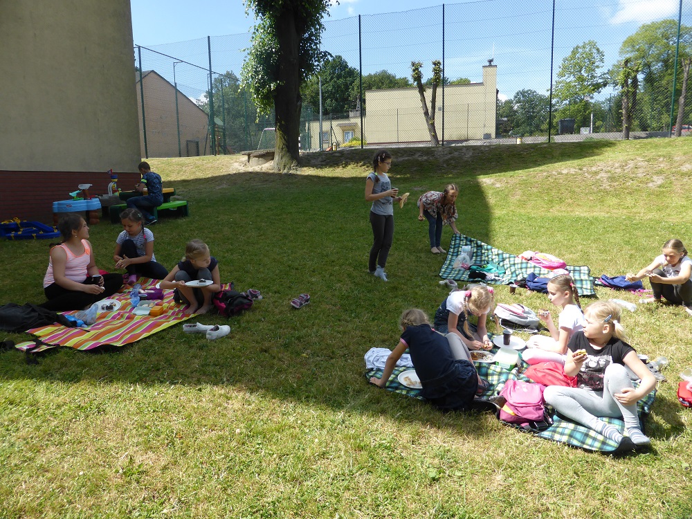 Ostatnim punktem spotkania był piknik przygotowany na terenie szkoły. Dzieci odpoczywały na kocach, a dorośli wspominali zrealizowane projekty i snuli plany dotyczące przyszłej współpracy.