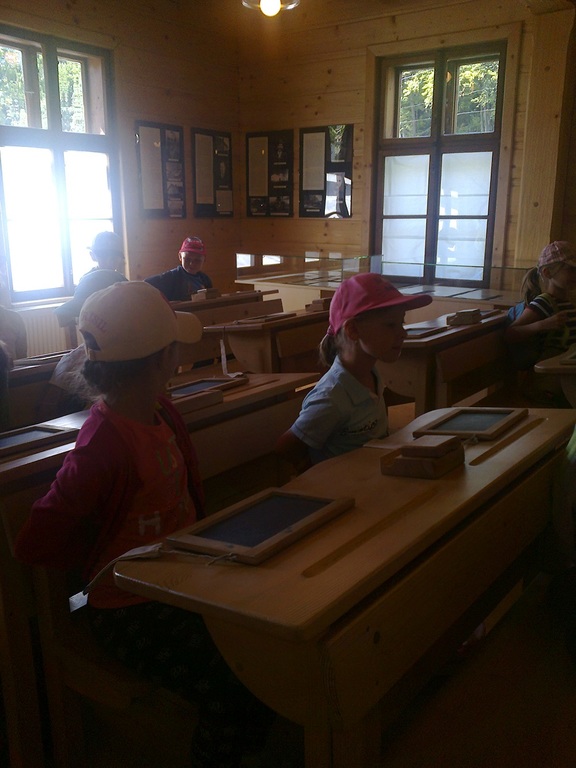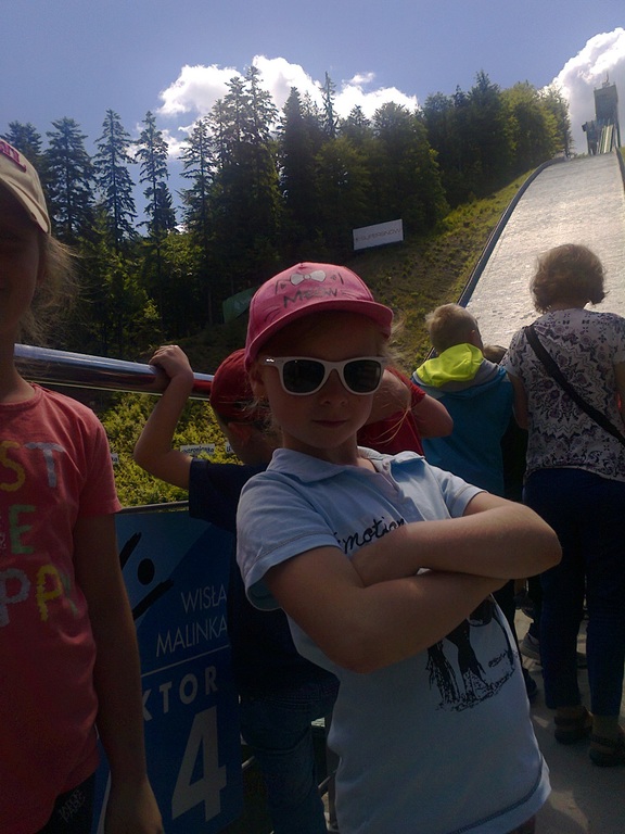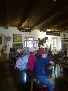 Dziś czekała nas ciekawa wyprawa. Wraz z uczniami SP z Kobyli udaliśmy się w piękne górskie okolice. Słońce od rana przygrzewało, a to zapowiadało udany wyjazd. Wycieczkę rozpoczęliśmy w Wiśle od zwiedzania Muzeum Beskidzkiego. Była to bardzo ciekawa lekcja dotycząca historii regionu, kultury i tradycji. Oglądaliśmy chaty góralskie urządzone w dawnym stylu, odwiedziliśmy kowala i poznaliśmy, na czym polegała jego praca. Interesujące spotkanie i zajęcia odbyły się w szkole, która urządzona była tak, jak kiedyś dawniej uczyły się dzieci z wykorzystaniem liczydeł, kałamarzy, gęsich piór i tabliczek do pisania. Zobaczyliśmy też ,,Czekoladowego Adama Małysza", a następnie słynną skocznię Jego imienia. Jeszcze krótki spacer po centrum Wisły, zakup ulubionej pamiątki i następne atrakcje. Kolejnym punktem naszej wyprawy była wizyta w ,,Chlebowej Chacie". Lekcja w tym niezwykłym miejscu była interesująca, a dzieci żywiołowo i bardzo aktywnie w niej uczestniczyły. Wachlarz oferowanych przez gospodarzy zagadnień był szeroki - zapoznanie się z podstawowymi gatunkami zbóż i ich zastosowaniem, oglądanie maszyn rolniczych i urządzeń do produkcji masła, sera, sprzętu do pozyskiwania miodu, ciekawostki z życia pszczół. Jednak najciekawszym zajęciem dla dzieci było praktyczne formowanie podpłomyków, które po upieczeniu z dodatkiem masła, miodu i smalcu zostały z wielkim apetytem zjedzone. Wycieczka była bardzo udana, dzieci w niekonwencjonalny sposób poznały tradycje, kulturę i zwyczaje wiejskie, a uczestnicząc w nich na zasadzie warsztatów wykazywały duże zadowolenie i zaciekawienie. Dziękujemy Kierownikowi wycieczki, opiekunom i dzieciom za aktywny udział, opiekę i mile spędzony czas.