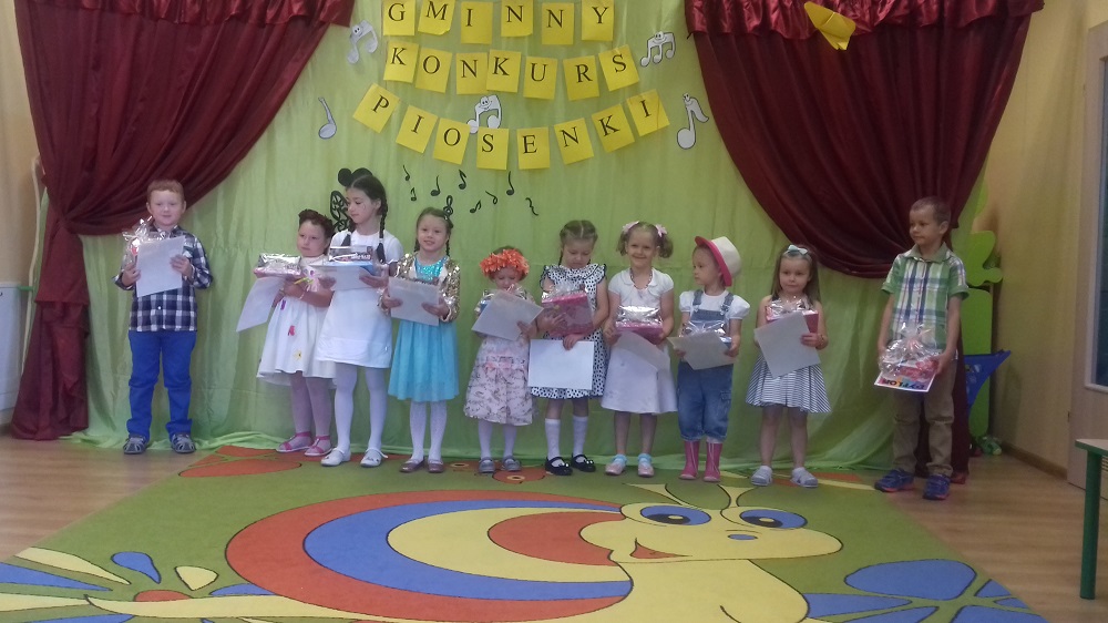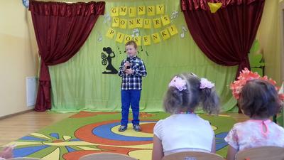 8 czerwca 2017r. dwoje dzieci z naszego przedszkola uczestniczyło w XIII Gminnym Festiwalu Piosenki Przedszkolnej, który odbył się w przedszkolu w Kobyli. Grupę młodszą reprezentowała Wiktoria (4 lata), a starszaków - Olek (6 lat).Celem festiwalu były: popularyzacja piosenki przedszkolnej, wyzwalanie u dzieci radości śpiewania, promocja osiągnięć przedszkoli w sferze działalności muzycznej, rozwijanie współpracy między przedszkolami, prezentacja umiejętności dzieci oraz zachęcanie do występów na scenie.Bernadeta Płaczek