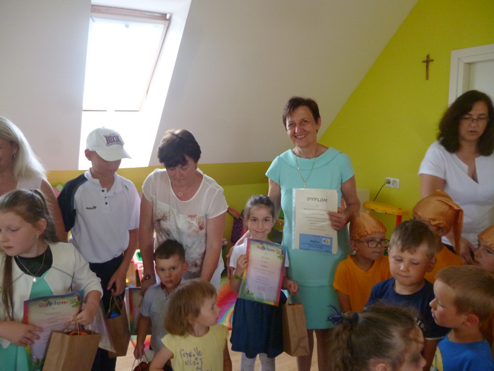 Nasze przedszkole uczestniczyło w XII Gminnym Konkursie Ekologicznym "Zbieramy plastikowe nakrętki". Głównym celem konkursu jest pomoc choremu Robertowi, który cierpi na mózgowe porażenie dziecięce spastyczne czterokończynowe oraz jest po operacji serca. Ponadto celem konkursu jest propagowanie edukacji ekologicznej u dzieci w wieku przedszkolnym, szkolnym oraz gimnazjalnym, a także konieczność działań mających na celu podejmowanie ochrony otaczającego nas środowiska. Nasze przedszkole zajęło w konkursie III miejsce. Nagrodę odebrała przedstawicielka przedszkola - Julia. W imieniu dzieci serdecznie dziękujemy organizatorom konkursu.
