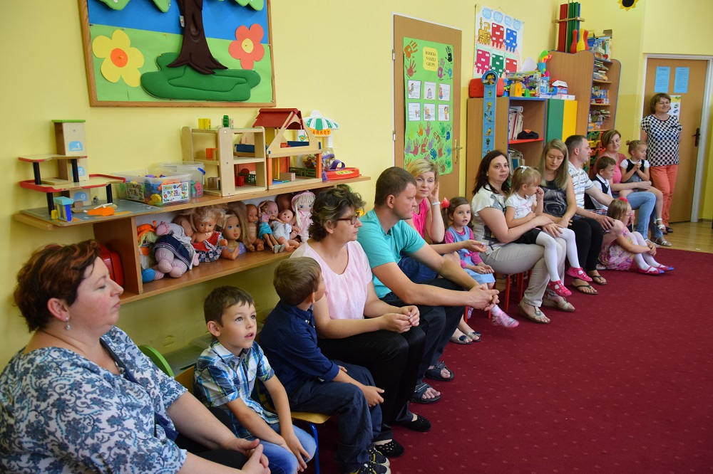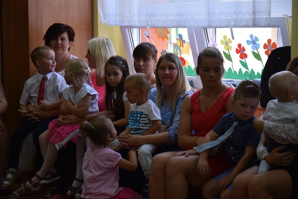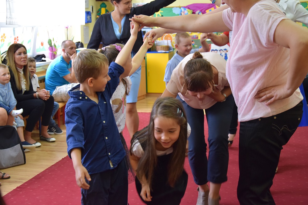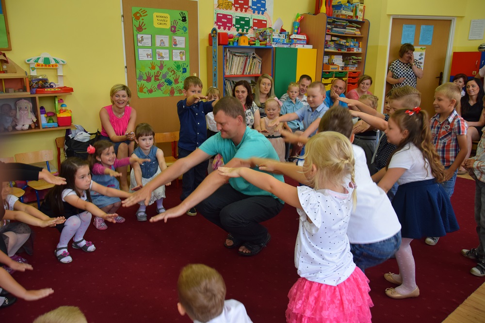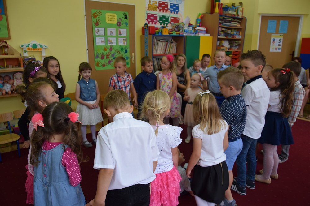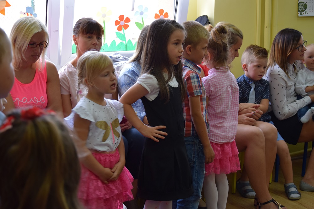 23 czerwca 2017 roku w naszym przedszkolu odbyło się uroczyste zakończenie roku szkolnego. Przedszkolaki recytowały wierszyki oraz śpiewały piosenki. Młodsze dzieci pożegnały swoich kolegów i koleżanki odchodzące z nowym rokiem szkolnym do szkoły. Przy tej okazji mamy starszaków w ramach akcji „Cała Polska Czyta Dzieciom” przeczytały wiersze z książeczki „Dobre wychowanie wierszem” („Przyjaciela warto mieć”, „Jak na jezdni się zachować”, „O tym, że mamy słuchać należy”, „Na co w domu uważać trzeba”). Następnie podczas zabawy ze słonkiem wybrane dzieci wypowiadały się na temat tego, co podobało im się w mijającym roku w przedszkolu. Później sześciolatki wraz z rodzicami zatańczyły poloneza, a po nim uczestniczyły w quizie podsumowującym programy i konkursy: „Czyste powietrze wokół nas”, konkurs „Nie truj sąsiada” oraz zasady bezpieczeństwa i dobrego zachowania. Na koniec wszyscy obecni na uroczystości zaśpiewali pożegnalną pieśń „Ogniska już dogasa blask” oraz przekazali sobie „iskierkę przyjaźni”, a przedszkolaki otrzymały pamiątkowe dyplomy, książki oraz tabla. Wszystkim rodzicom dziękujemy za pomoc i współpracę, a dzieciom życzymy bezpiecznych, słonecznych wakacji oraz udanego wypoczynku.