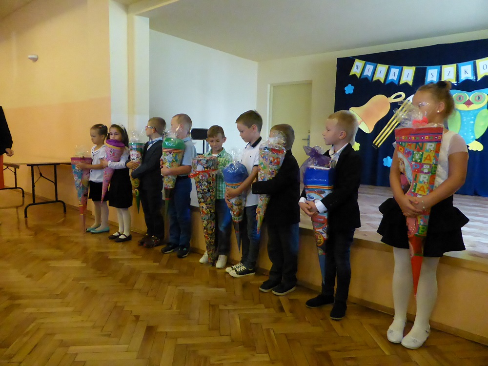 4 września 2017r. uczniowie naszej szkoły rozpoczęli nowy rok szkolny. Główna uroczystość odbyła się w Domu Kultury w Rzuchowie. Rozpoczęła się od przemówienia Pani Dyrektor, wprowadzenia flagi państwowej i odśpiewania hymnu szkoły. W uroczystości brali udział nauczyciele, uczniowie naszej szkoły oraz uczniowie klasy I z rodzicami. Wychowawczyni kl. I na pamiątkę tego ważnego wydarzenia wręczyła rogi obfitości przygotowane przez rodziców. Do I klasy obecnie uczęszcza 9 uczniów. Po zakończeniu części oficjalnej uczniowie i nauczyciele przeszli do szkoły, gdzie odbyły się spotkania z wychowawcami klas. Uczniowie kl. I poznali swoją klasę, szkołę i boisko szkolne. Została im przekazana informacja o możliwości dojazdu do szkoły autobusem szkolnym.