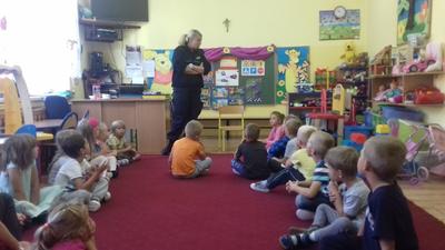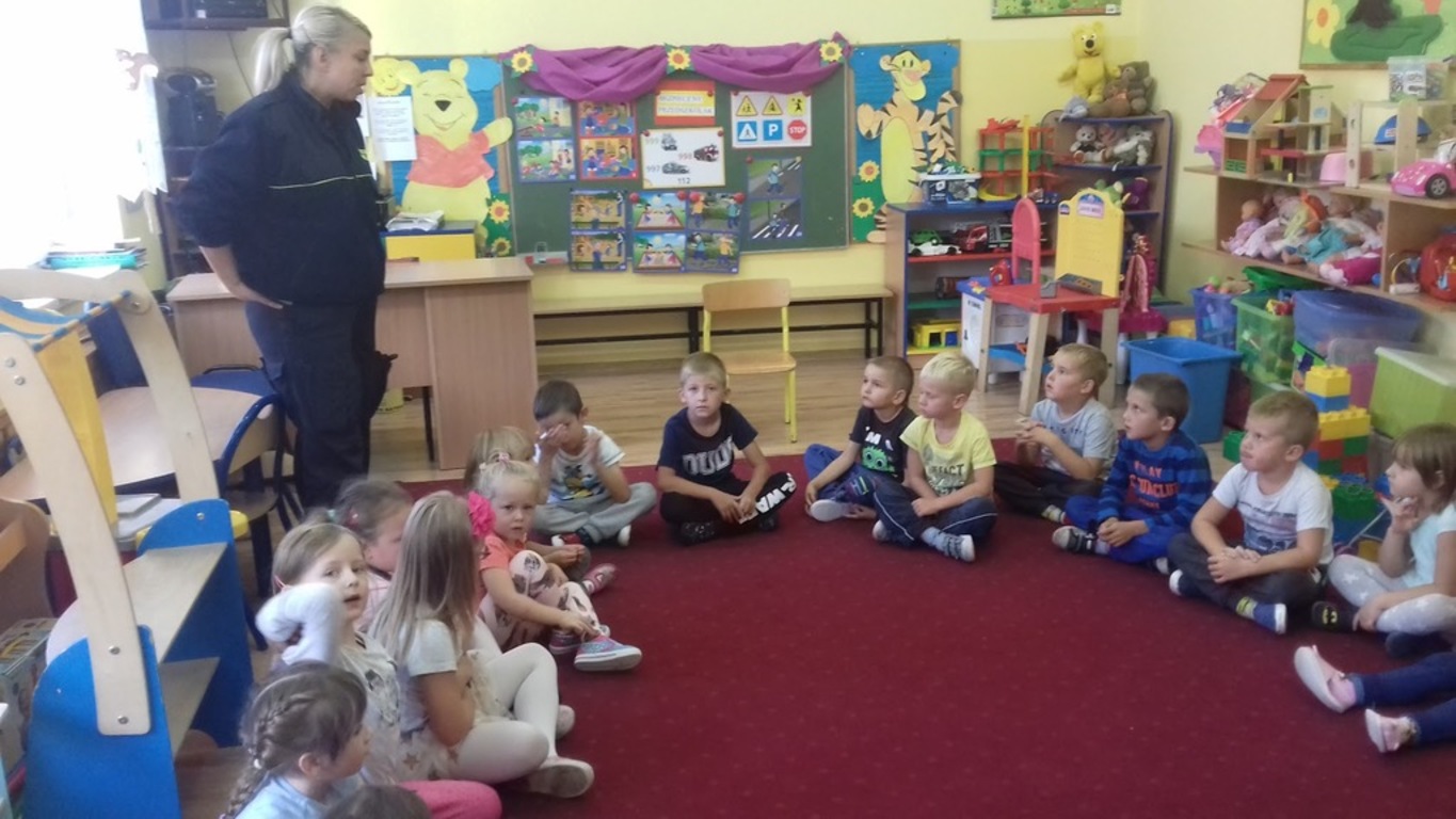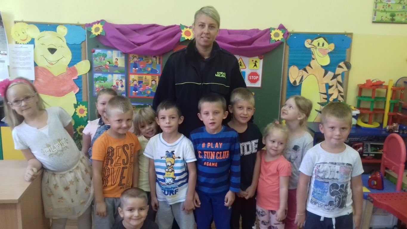 Według podstawy programowej wychowania przedszkolnego do zadań przedszkola należy m.in. tworzenie sytuacji sprzyjających rozwojowi nawyków i zachowań prowadzących do samodzielności, dbania o zdrowie, sprawność ruchową i bezpieczeństwo, w tym bezpieczeństwo w ruchu drogowym. Przedszkolak musi wiedzieć, że: powinien wybierać bezpieczne miejsce do zabaw, prawidłowo poruszać się po ulicy, nie może oddalać się od rodziców w miejscach publicznych, nie może odchodzić z obcymi osobami, nie powinien zbliżać się do nieznanych zwierząt czy samowolnie korzystać z urządzeń elektrycznych. Aby zapoznać dzieci z zasadami bezpieczeństwa na początku września zorganizowaliśmy cykl zajęć pod tytułem " Bezpieczny przedszkolak", a do współpracy zaprosiliśmy Straż Miejską. Mamy nadzieję, że dzięki tym zajęciom dzieci będą rozumieć potrzebę dbałości o swoje bezpieczeństwo. Oczywiście dorośli ciągle powinni korzystać z każdej okazji, by uczulać dzieci na niebezpieczeństwa wynikające z nieprzestrzegania tak ważnych zasad .
