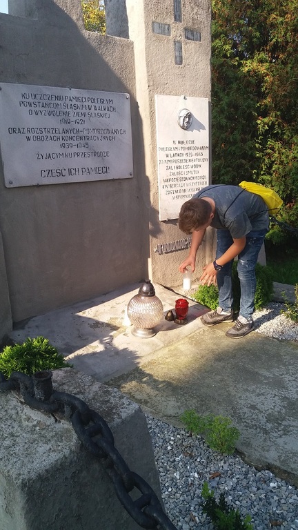 Pierwszym miejscem naszej wyprawy był pomnik znajdujący się w parku w Rzuchowie. Następnie na cmentarzu w Pstrążnej zatrzymaliśmy swoje kroki przy grobie Antoniego Tomiczka - pilota wojskowego, weterana II wojny światowej oraz przy pomniku poświęconym powstańcom śląskim, poległym podczas II wojny światowej oraz pomordowanym w obozach koncentracyjnych.