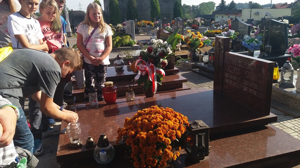 W związku z mijającym już miesiącem wrześniem, w którym to szczególnie pamiętamy o bohaterach II Wojny Światowej i o wszystkich tych, którzy na przełomie lat oddawali życie w obronie naszej Ojczyzny, uczniowie klasy 6 odwiedzili miejsca pamięci narodowej znajdujące się w najbliższej okolicy. Dzieci zapaliły znicze, odmówiły modlitwę, uczciły ciszą pamięć o zmarłych.