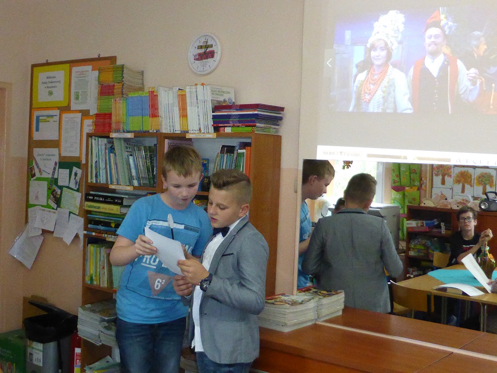 Uczniowie klasy szóstej SP w Rzuchowie włączyli się w ogólnopolską akcję czytelniczą Narodowe Czytanie 2017. Lekcja wspólnego czytania „Wesela” Stanisława Wyspiańskiego odbyła się 6 października w szkolnej bibliotece.