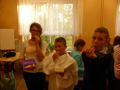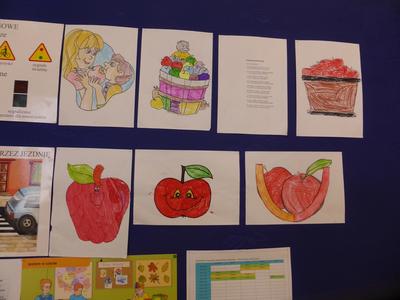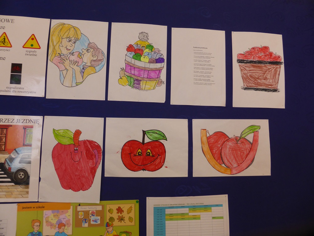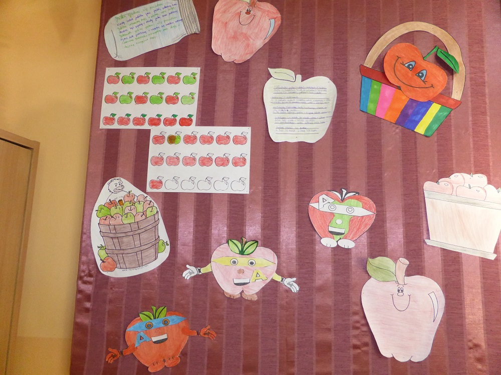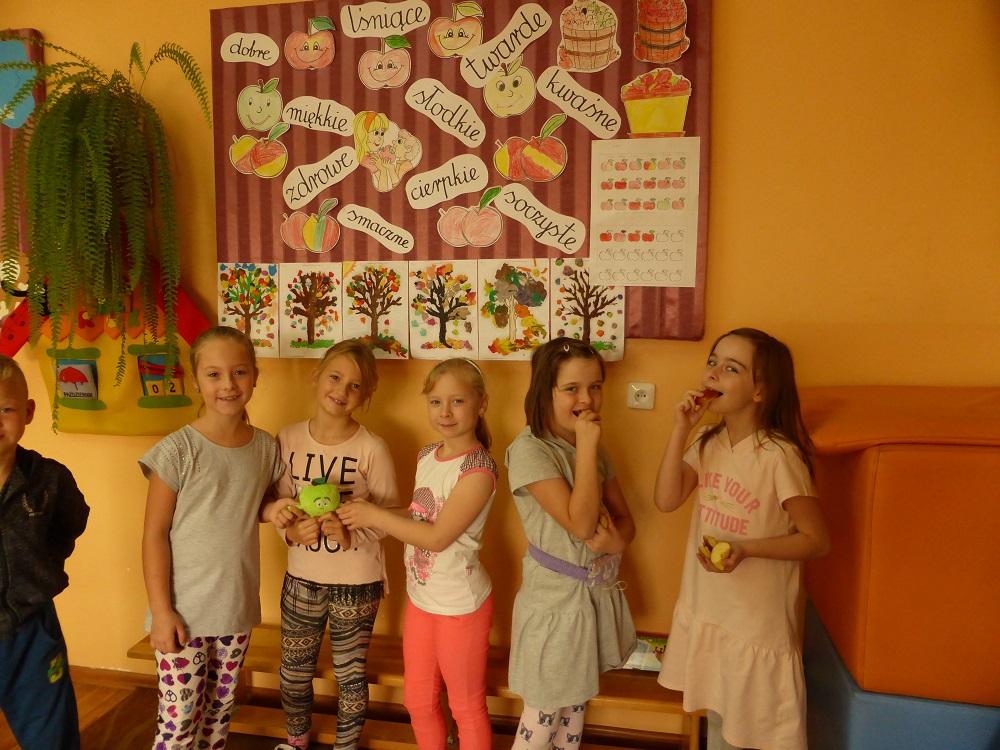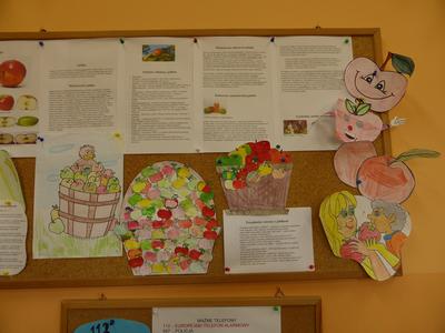 W październiku w naszej szkole odbywała się tygodniowa akcja prozdrowotna pod hasłem ,,Święto jabłka", w której brała udział cała społeczność uczniowska. W czasie jej trwania dzieci codziennie na przerwach zjadały smaczne i chrupiące owoce, a ich ilość skrupulatnie była kontrolowana i odnotowywana na specjalnej karcie. W niektórych klasach poszczególne rubryki tabel w mig zapełniły się kolorowymi jabłkami. Oprócz tego uczniowie podczas zajęć i przerw wykonywali różne zadania związane tematycznie z jabłkami - były dyskusje i rozmowy o wartościach odżywczych, gatunkach jabłek, dzielono się przepisami kulinarnymi, omawiano znaczenie przysłów i powiedzeń. Klasy starsze czytały i omawiały krótkie opowiadania i bajki z ,,udziałem jabłka" , a klasy I-III wykonały książkę z ilustracjami - ,,od pestki do owocu". Dzieci wykonały też wiele ciekawych i kolorowych prac plastycznych, które upiększyły jesienne gazetki klasowe. Święto jabłka w szkole miało sporą ilość zwolenników, o czym świadczy zaangażowanie w rozwiązywaniu poszczególnych zadań oraz nastawienie do ciekawych przedsięwzięć prozdrowotnych. Mamy nadzieję, że akcja przybliżyła dzieciom wartości odżywcze, zdrowotne i walory smakowe tych wspaniałych i smacznych owoców, a także zachęciła, aby częściej sięgać po ten zdrowy, rodzimy owoc. Już niedługo spotkanie z marchewką i wtedy zostaną rozstrzygnięte i podsumowane obydwie akcje.