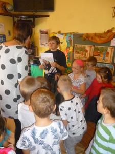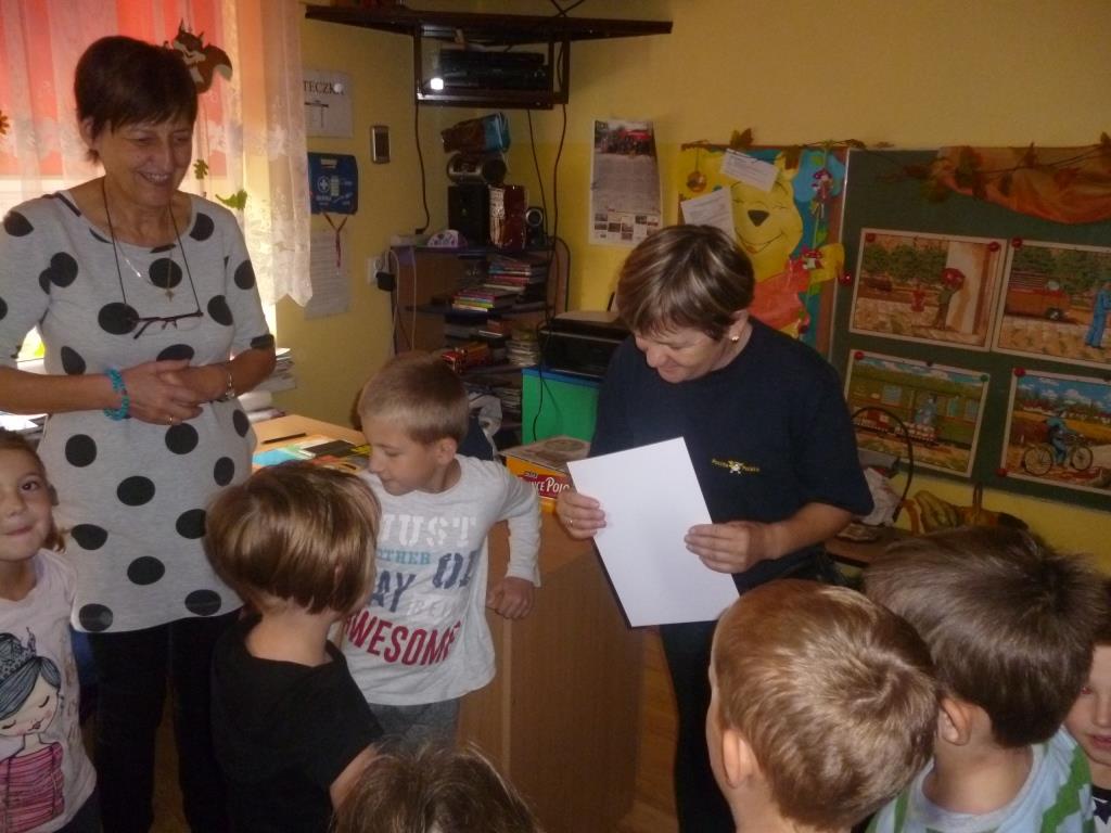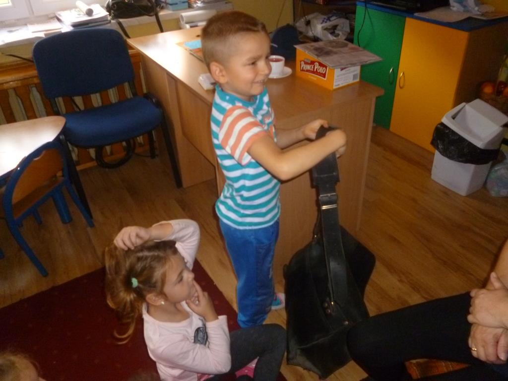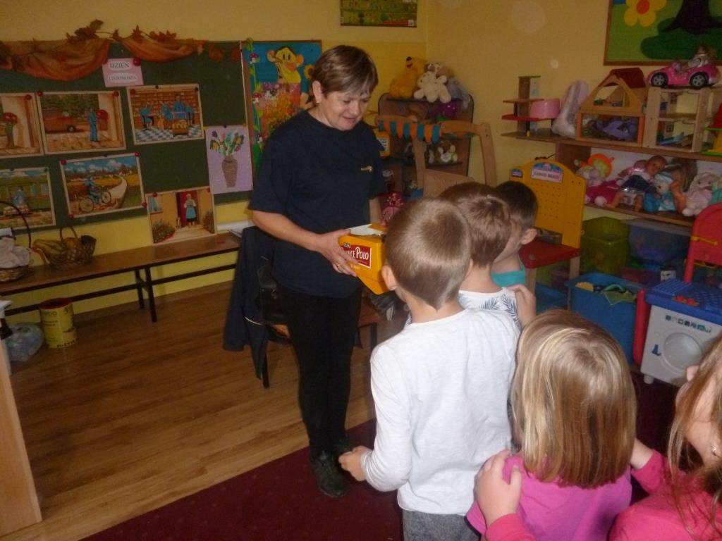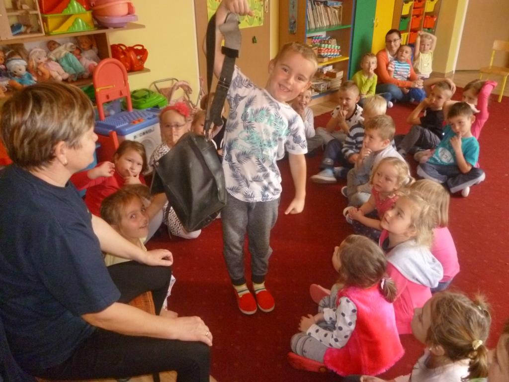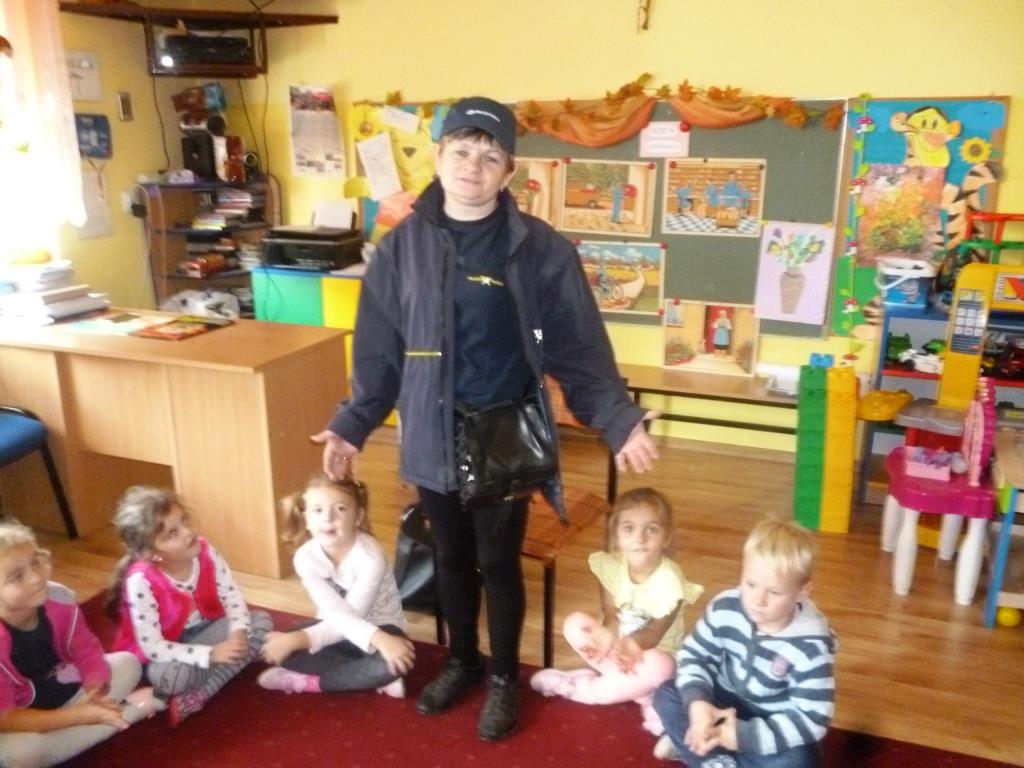 18 października listonosze obchodzą swoje święto. Chcąc podziękować naszej pani Krysi za jej potrzebną i ważną dla ludzi pracę, zaprosiliśmy ją do naszego przedszkola. Pani Krysia opowiedziała o swoich obowiązkach, przedstawiła znaczenie adresu przy dostarczaniu listów i innych przesyłek pocztowych, a nawet pozwoliła przymierzyć swoją służbową czapkę. Wiele emocji i radości sprawiło dzieciom podnoszenie ciężkiej torby listonosza. Przy tej okazji dzieci pochwaliły się znajomością adresu zamieszkania (według podstawy programowej powinny się nim posługiwać). Na koniec spotkania przedszkolaki otrzymały od pani listonosz koperty i słodycze, a dzieci wręczyły jej laurki. Życzymy wszystkim listonoszom dużo sił i zdrowia oraz satysfakcji z pracy.