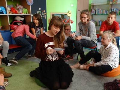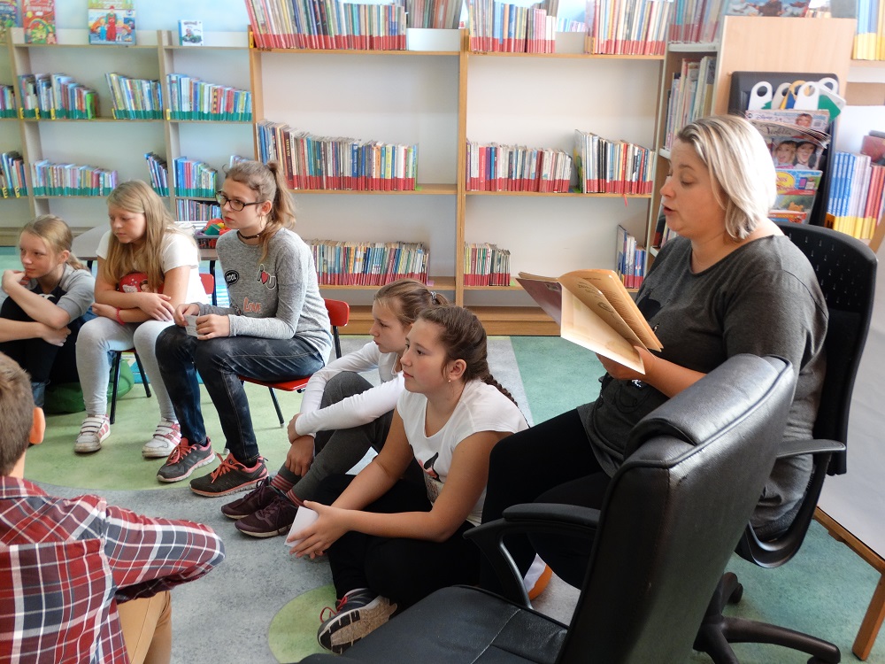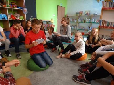 W październiku – Międzynarodowym Miesiącu Bibliotek Szkolnych - częściej odwiedzamy biblioteki i czytelnie. 17 października grupa uczniów z klas IV-VI w ramach zajęć bibliotecznych udała się do Biblioteki Publicznej im. Henryka Mikołaja Góreckiego w Rydułtowach. Uczniowie zwiedzili nowy budynek biblioteki, zapoznali się ze zbiorami wypożyczalni i czytelni. Następnie wzięli udział w lekcji bibliotecznej, która odbyła się w pięknej wypożyczalni dla dzieci. Uczniowie układali ciąg dalszy historii przeczytanej im przez panią bibliotekarkę. Wszyscy uczniowie z wielkim zaangażowaniem włączyli się do zaproponowanego zadania. Uczestnicy wycieczki zapoznali się z księgą pamiątkową wypożyczalni. Chętni uczniowie mogli zapisać się do nowej biblioteki.