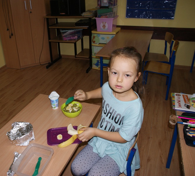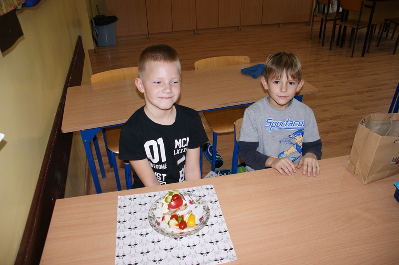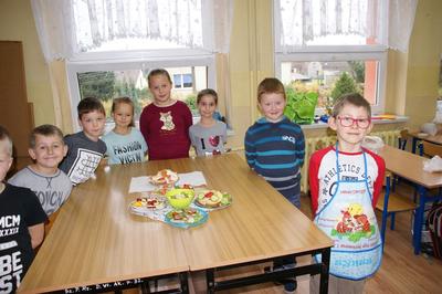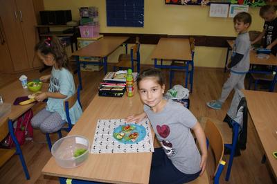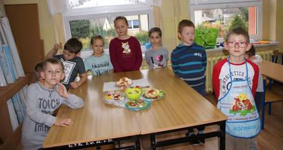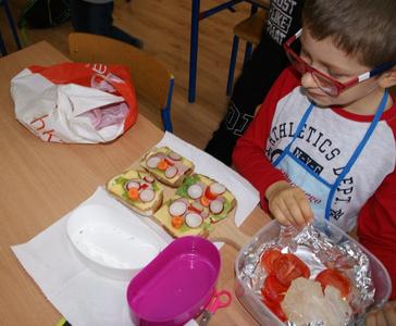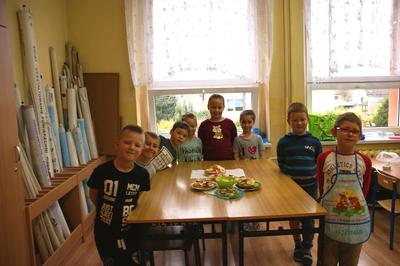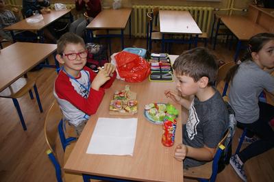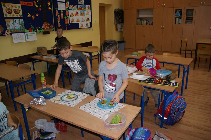 08.11.2017 r. uczniowie kl. I brali udział w zajęciach pt. „Śniadanie daje moc”. Zapoznali się z zasadami zdrowego żywienia, właściwą ilością posiłków przyjmowanych w ciągu dnia oraz z higieną ich spożywania. Następnie z produktów, które wcześniej przygotowali, zrobili zdrowe kanapki i urządzili z nich wystawkę. Później z wielkim apetytem i smakiem spożywali je. Na zakończenie wykonali prace plastyczne związane ze zdrowym odżywianiem się.