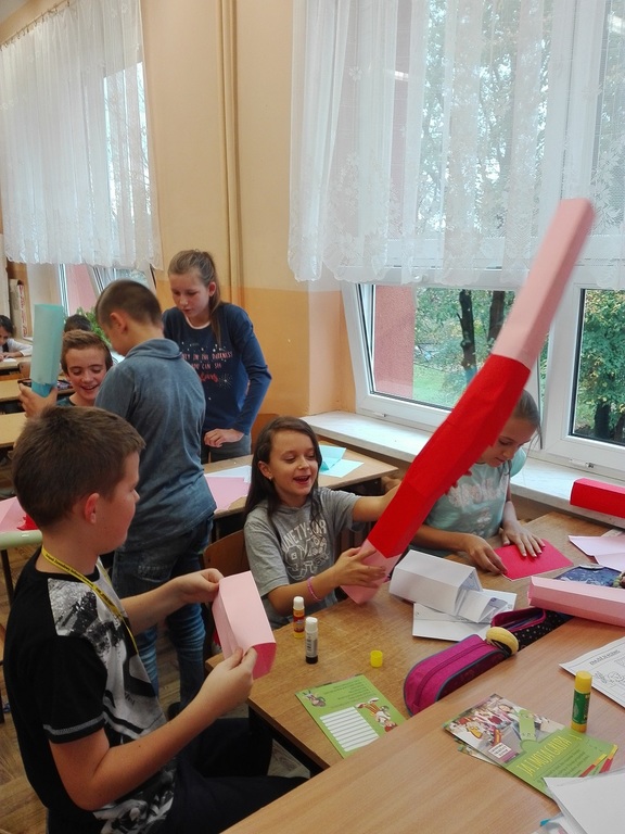 W ramach realizowanej kampanii edukacyjno - profilaktycznej „Zachowaj Trzeźwy Umysł” finansowanej ze środków Gminnej Komisji Rozwiązywania Problemów Alkoholowych przeprowadzono lekcje wychowawcze w klasach V oraz VI „Ja i moja grupa”. Na wstępie zaprezentowano uczniom wiersz Tadeusza Różewicza „List do ludożerców” i zainicjowano dyskusję dotyczącą wzajemnych kontaktów międzyludzkich, wagi zachowań prospołecznych oraz poszanowania drugiego człowieka. W formie zabawy uczniowie podzieleni na grupy budowali również wieże z papieru co miało pokazać ich umiejętności współpracy. Na koniec uczniowie mieli wskazać zachowania, które pozytywnie bądź negatywnie wpływały na pracę grupy. Zrealizowane zajęcia miały uzmysłowić uczniom, że grupa rówieśnicza stanowi wyjście do budowania prawidłowych relacji z innymi ludźmi w dorosłym życiu.