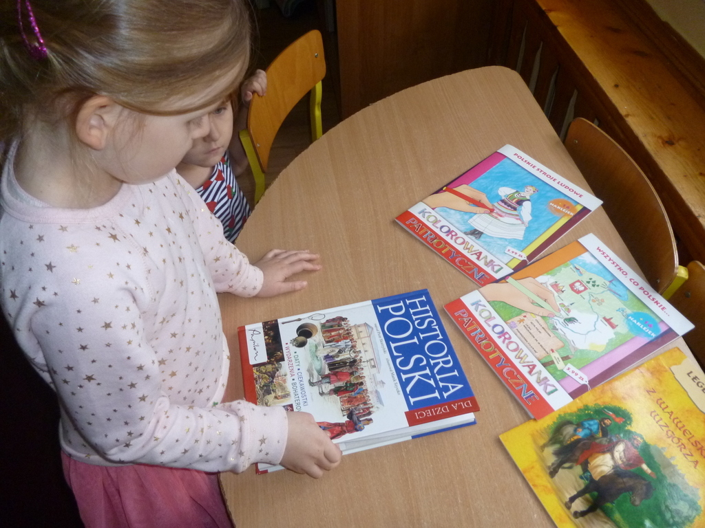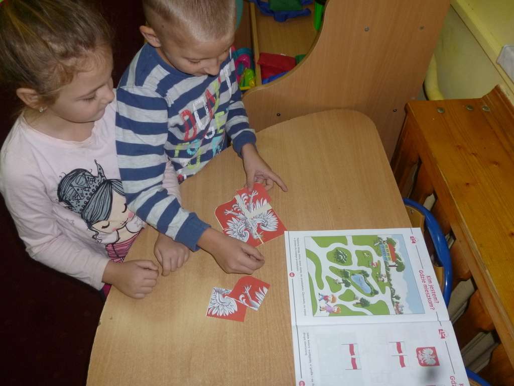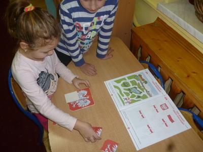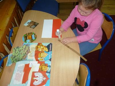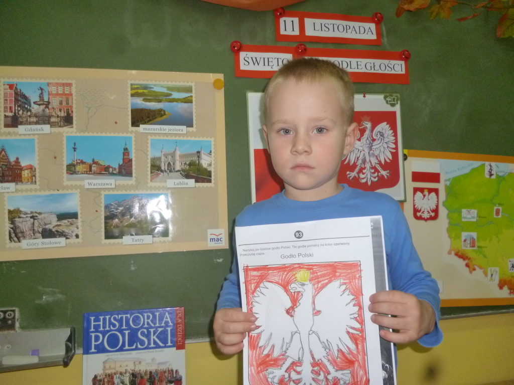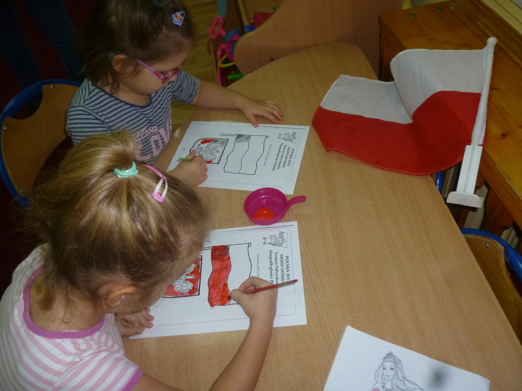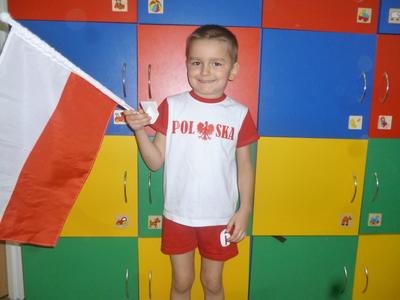 Według nowej podstawy programowej w ramach społecznego obszaru rozwoju dziecko powinno odczuwać i wyjaśniać swoją przynależność do rodziny, narodu, grupy przedszkolnej, powinno nazywać i rozpoznawać wartości związane z umiejętnościami i zachowaniami społecznymi, np. szacunek do dzieci i dorosłych, szacunek do ojczyzny. W zakresie poznawczego obszaru rozwoju dziecko powinno wymieniać nazwę swojego kraju i jego stolicy, rozpoznawać symbole narodowe (godło, flaga, hymn). Nasze przedszkolaki w przeddzień narodowego Święta Niepodległości obejrzały film edukacyjny „Polskie Symbole Narodowe", śpiewały hymn Polski, słuchały wiersza Marii Łaszczuk „Znak” oraz Cz. Janczarskiego "Ojczyzna" i wykonały pracę plastyczną pt. „Symbole narodowe”.