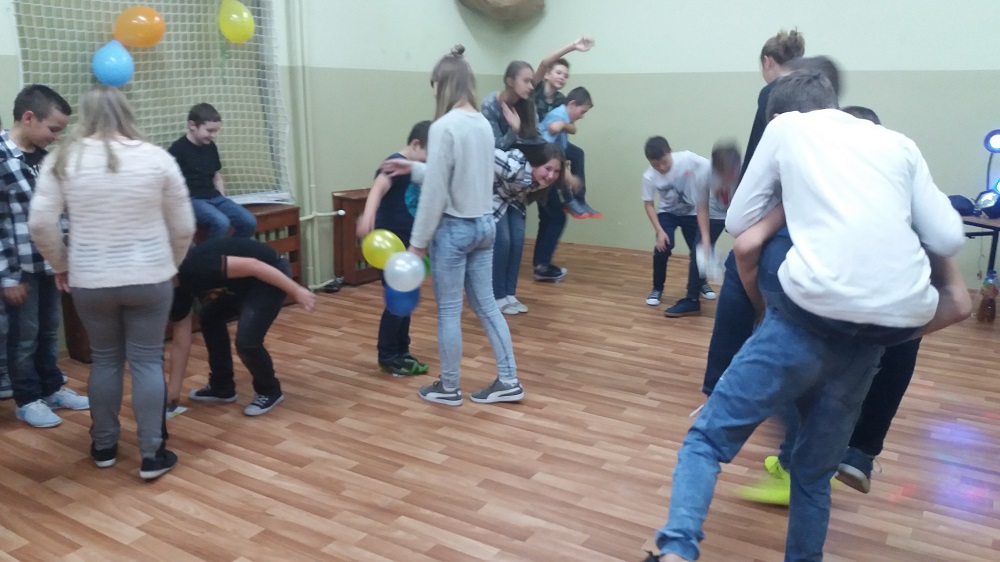 24 listopada w naszej szkole odbyła się dyskoteka zorganizowana przez Samorząd Uczniowski. Uczniowie klas starszych spotkali się o godzinie 17: 00 w sali gimnastycznej, gdzie bawili się w rytm najnowszych przebojów muzycznych. Nasz szkolny wodzirej - Fabian zapraszał wszystkich do wspólnego tańca, a DJ Mikołaj i DJ Jakub zadbali o odpowiednią oprawę muzyczną.