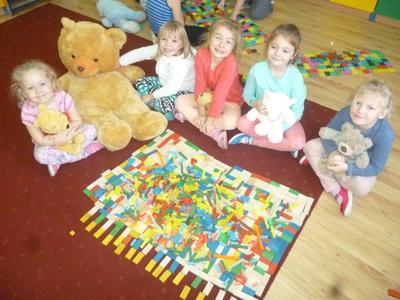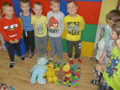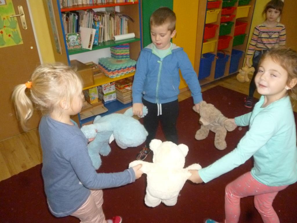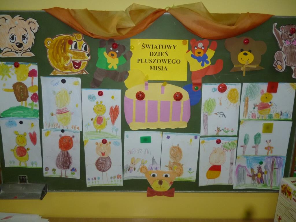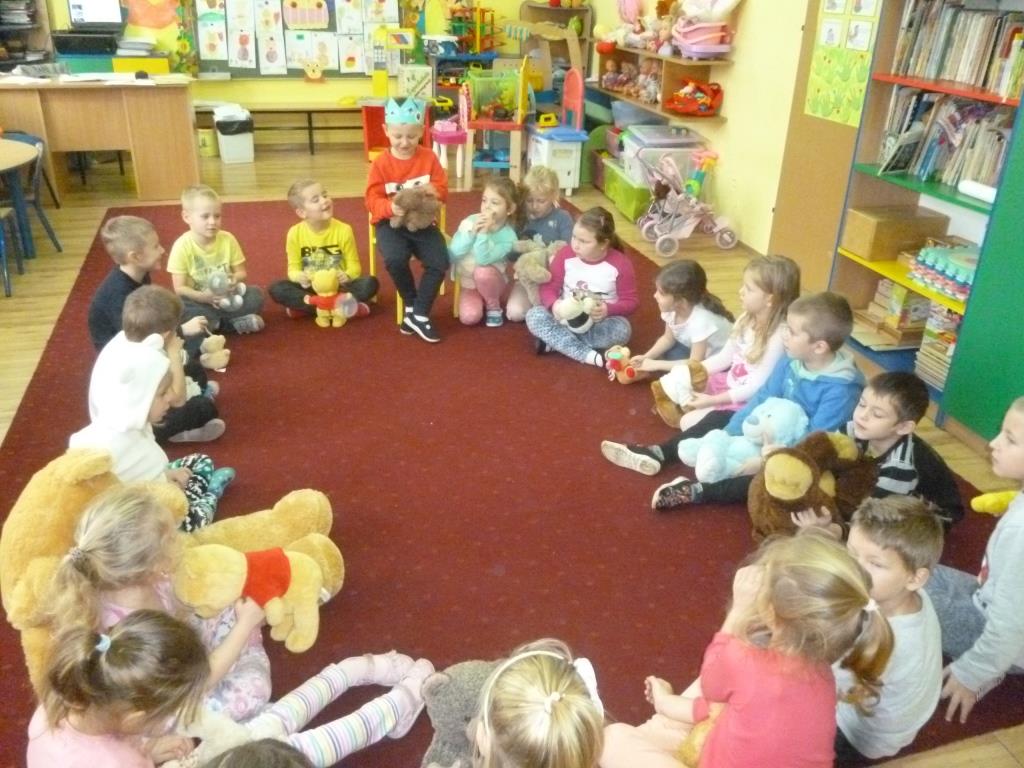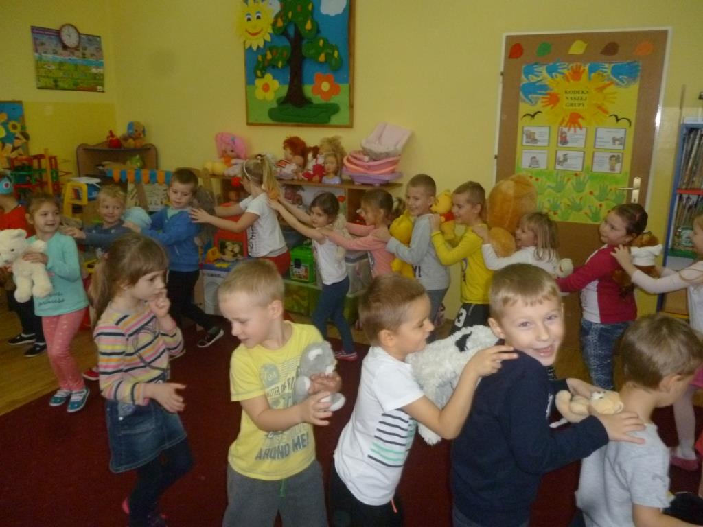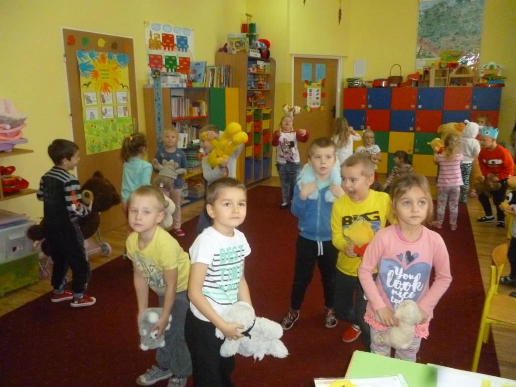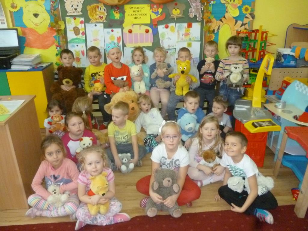 W poniedziałek 27 listopada przedszkolaki z Rzuchowa uczestniczyły w obchodach Światowego Dnia Pluszowego Misia. Tego dnia każde dziecko przyszło do przedszkola ze swoim ulubionym pluszowym przyjacielem. Nasze zajęcia rozpoczęliśmy od wysłuchania historii pluszowego misia, który to powstał w Stanach Zjednoczonych na cześć ówczesnego prezydenta Theodore Roosevelta. Następnie przedszkolaki przedstawiały swoje pluszaki, recytowały rymowankę „Ja jestem niedźwiadek”, układały puzzle, obejrzały bajkę „Troskliwe misie” oraz bawiły się przy piosence „Jadą, jadą misie”. Ponadto każdy przedszkolak narysował swoją ulubioną maskotkę samodzielnie, zbudował z klocków piękny tort dla swojego pluszowego przyjaciela oraz uczestniczył w wielu ciekawych zabawach ruchowych. Ten misiowy dzień upłynął nam w miłej i radosnej atmosferze oraz dostarczył wszystkim wielu niezapomnianych wrażeń.