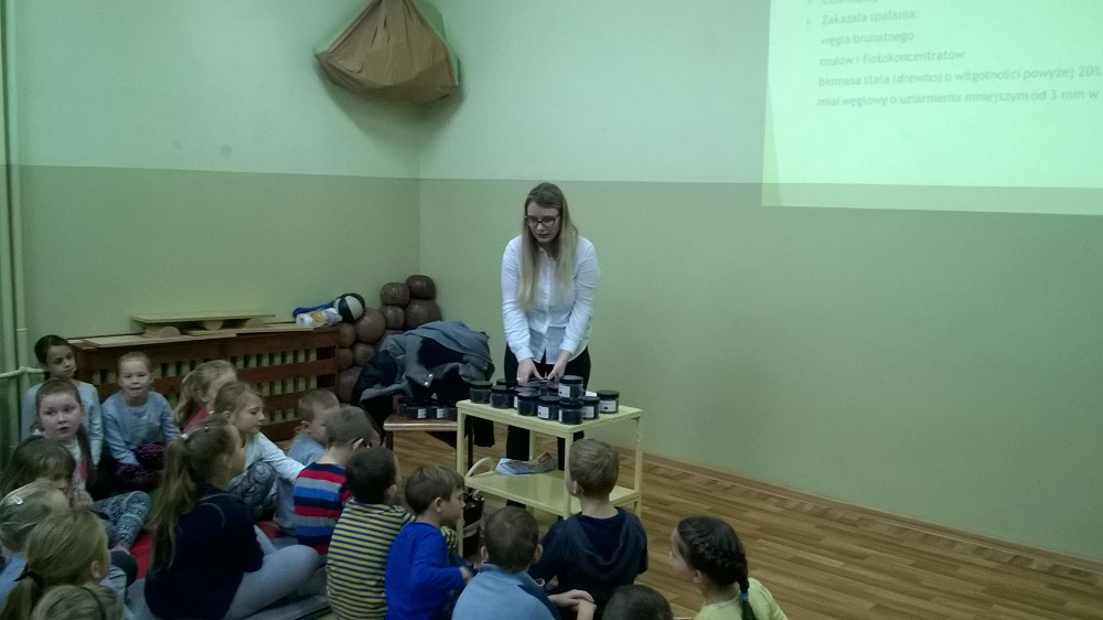 8 grudnia w szkole odbyła się prelekcja na temat zanieczyszczenia powietrza w naszej okolicy. Poprowadziła ją pani Kinga Mróz – przedstawiciel Wydziału Ochrony Środowiska Urzędu Gminy w Kornowacu. Na początku uczennice klasy VI zaprezentowały doświadczenie pokazujące w jaki sposób powstaje smog. Następnie pani Kinga na podstawie prezentacji wyjaśniła co jest smog i dlaczego jest groźny dla naszego zdrowia oraz jak można zapobiegać zanieczyszczaniu powietrza. Dzieci mogły tez zobaczyć próbki opałów szkodliwych np. flotokoncentrat węglowy, muł węglowy i takich którymi można palić w piecach: ekogroszek, węgiel Orzech I, węgiel Orzech II. Uczniowie dowiedzieli się również o tym, że na stronie internetowej Urzędu Gminy Kornowac znajduje się aplikacja „Pomiar jakości powietrza”, która informuje o aktualnym stanie czystości powietrza w okolicy. Informacje te zbiera specjalny czujnik zainstalowany na budynku Urzędu Gminy.