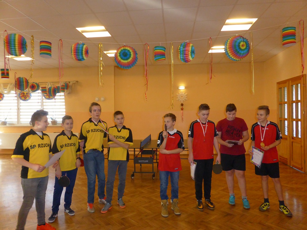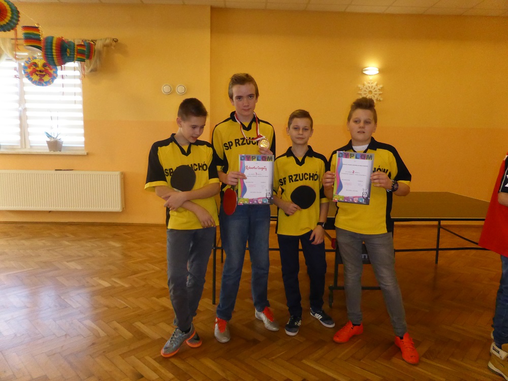 15 stycznia 2018 r. w sali GOK w Rzuchowie odbył się Gminny Turniej Tenisa Stołowego dla uczniów szkół podstawowych. W zawodach wystartowali najlepsi zawodnicy wcześniej wyłonieni w ramach zajęć UKS prowadzonych w szkołach. I miejsce uzyskała Szkoła Podstawowa w Pogrzebieniu, II miejsce - Szkoła Podstawowa w Rzuchowie, a III miejsce - Szkoła Podstawowa w Kobyli. Najlepszymi zawodnikami okazali się: Pascal Baron z Pogrzebienia, który wywalczył złoty medal, srebro otrzymał Adam Melc również z Pogrzebienia, a brąz - Robert Czogała z Rzuchowa. Szkołę w Pogrzebieniu reprezentowali zawodnicy w składzie: Pascal Baron, Adam Melc, Michał Zając, Wiktor Karasiewicz. Szkołę w Kobyli - bracia Adam i Piotr Scheithauer, Oliwier Kowacz, Bartosz Kura. Szkołę w Rzuchowie - Mikołaj Mentel, Jakub Trepiak, Jakub Mrozek i Robert Czogała. Wszystkim zawodnikom gratulujemy wysokiego poziomu gry i życzymy dalszych sukcesów.