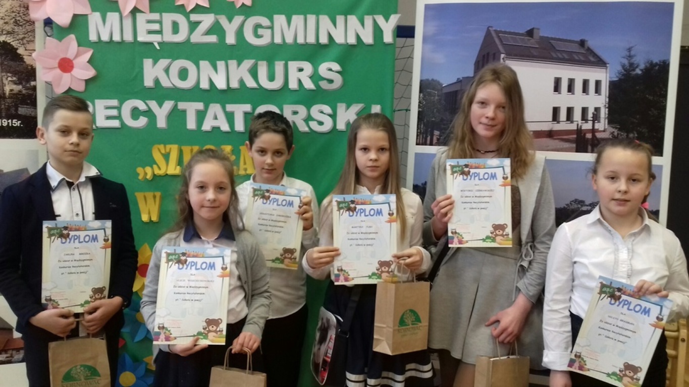 6 marca sześcioro uczniów naszej szkoły brało udział w XVIII Międzyszkolnym Konkursie Recytatorskim, który w tym roku odbył się pod hasłem „Szkoła w poezji”. Najlepsi recytatorzy poszczególnych klas pojechali na międzyszkolne eliminacje do Szkoły Podstawowej w Kobyli. Klasę I reprezentowała Milena Grasman z wierszem Czesława Janczarskiego „Powitanie I klasy”. Uczennica klasy drugiej to Alicja Wojciechowska, która przedstawiła utwór Tomasza Matuszewskiego „Staś czytelnik”. Przedstawicielem klasy III był Sebastian Chroboczek, który deklamował liryk Zygmunta Marka Miszczaka „Wagary Jasia”. Klasy starsze reprezentowali uczniowie: Martyna Fura z klasy IV, Jakub Mrozek – uczeń klasy V oraz Wiktoria Czerkawska, szóstoklasistka. Najstarsi uczniowie recytowali wiersze Karola Szpalskiego i Mariana Załuckiego – „Dyżurny Ptyś”, „O Felku, który nigdy nie kładł niczego na swoje miejsce” i „Ada – co podpowiada”. Poziom konkursu był bardzo wysoki. Uczniowie pięknie, z wielkim zaangażowaniem przedstawili swoje utwory. Mimo że w tym roku nikomu z naszych uczniów nie udało się wejść na podium, to serdecznie im gratulujemy i życzymy sukcesów w kolejnych konkursach.