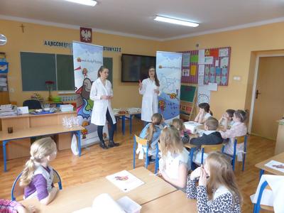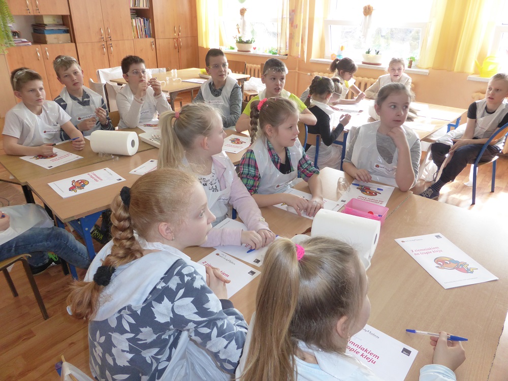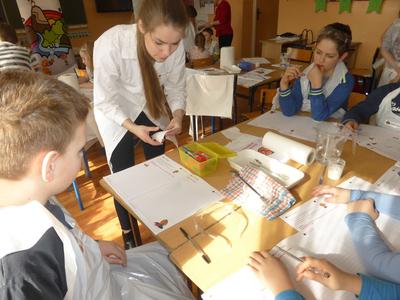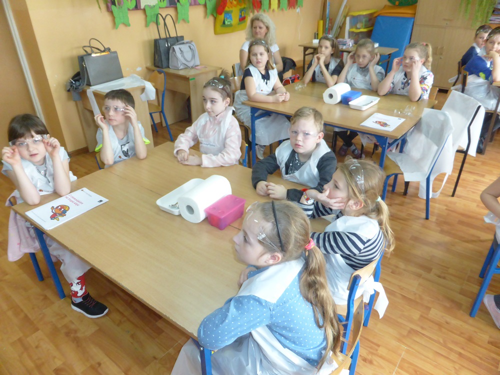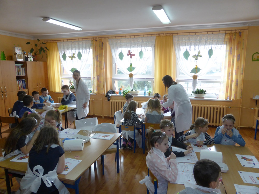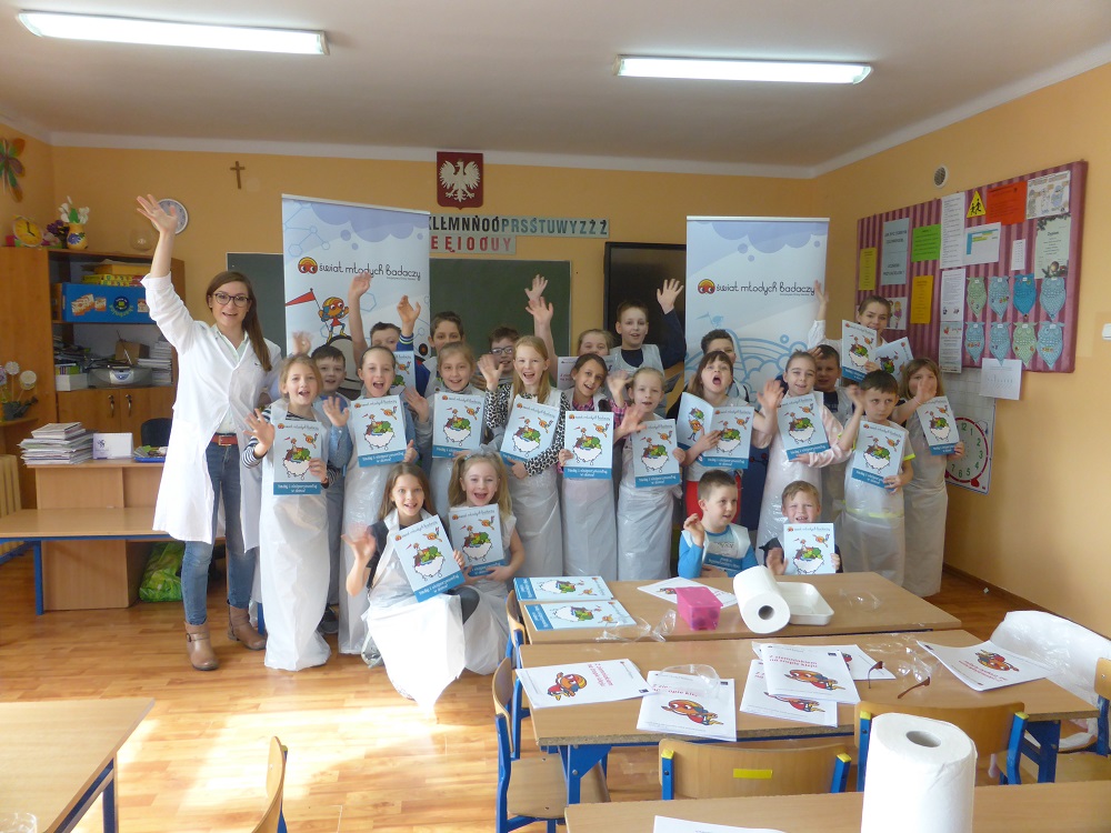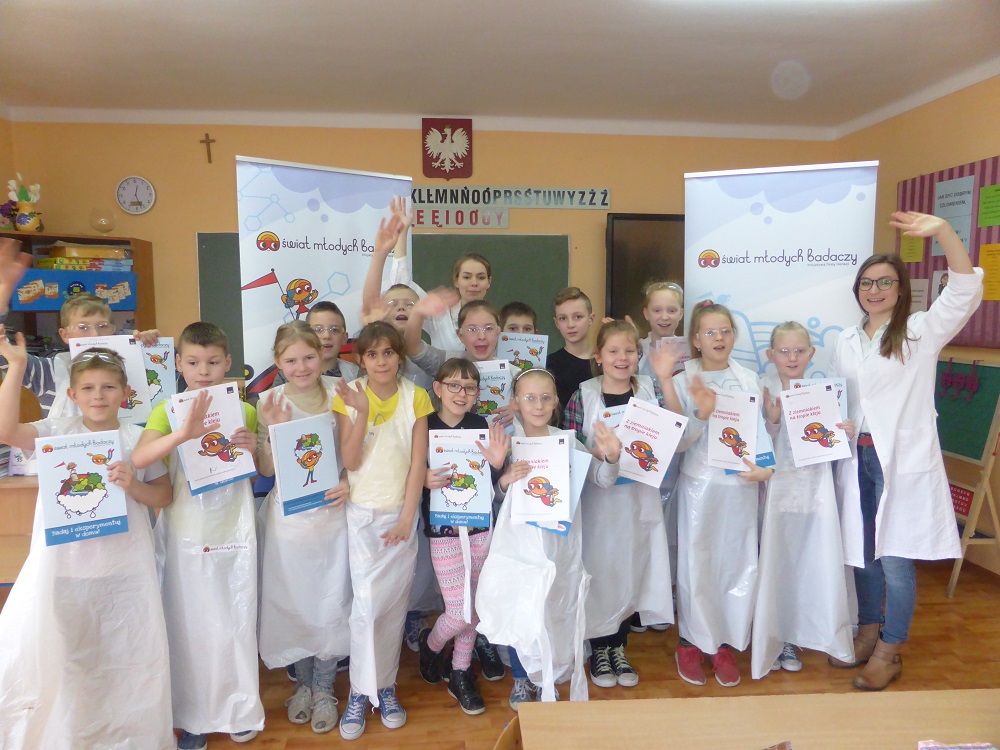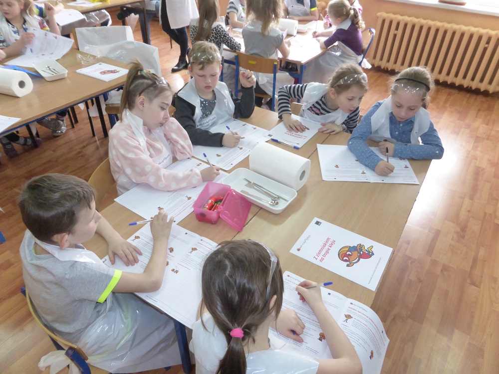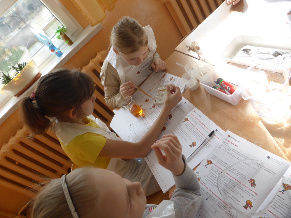W naszej szkole 13.03.2018 roku odbyły się zajęcia badawcze z udziałem uczniów klas: drugiej, trzeciej i czwartej. Zajęcia odbywały się w formie dziewięćdziesięciominutowych, interaktywnych i atrakcyjnych warsztatów, prowadzonych przez przeszkolonych edukatorów organizacji: Nauka Jest Fajna! - partnera edukacyjnego programu. Uczniowie naszej szkoły wykonywali nieskomplikowane eksperymenty badawcze – "Z ziemniakiem na tropie kleju"; musieli m.in. podołać samodzielnemu odmierzaniu i mieszaniu potrzebnych składników. Mieli też czas na omawianie wyników przeprowadzonych eksperymentów, zadawali liczne pytania prowadzącym, snuli hipotezy i wyciągali wnioski - innymi słowy mogli poczuć się jak prawdziwi badacze w laboratorium.