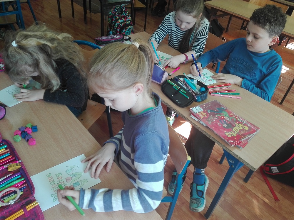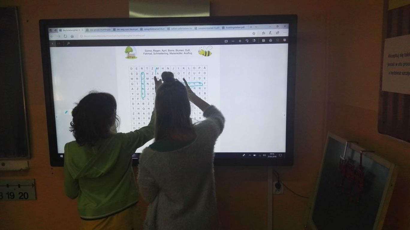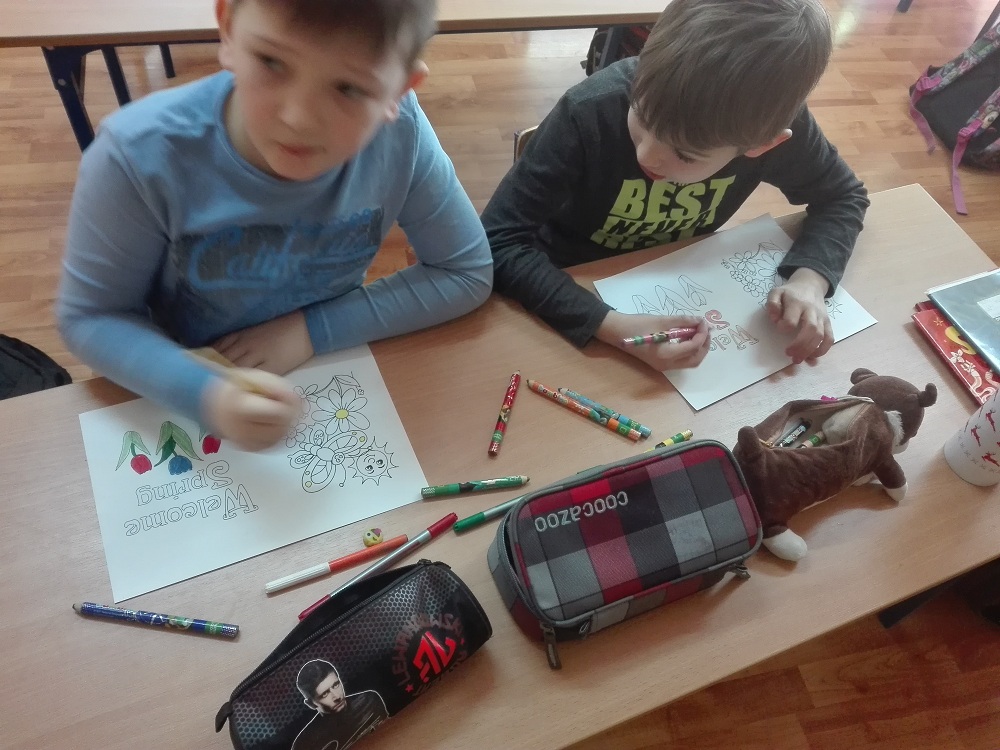 21 marca to kolejna wyjątkowa data w kalendarzu roku szkolnego. Chociaż tegoroczna wiosna niechętnie odsłoniła swoje oblicze, to naoczni świadkowie twierdzą, że kalendarzowa wiosna zaprezentowała się lepiej niż wiosna astronomiczna. Uczniowie naszej szkoły czekali na ten dzień z niecierpliwością, bo Pierwszy Dzień Wiosny obchodzony był u nas w niecodzienny sposób. Tego dnia na lekcjach języka niemieckiego tematyka zajęć była poświęcona rozpoczynającej się w tym dniu nowej porze roku – wiośnie. Uczniowie w klasach młodszych oglądali bajkę, a później wykonywali różne prace plastyczno - zręcznościowe dotyczące obejrzanego materiału. Uczniowie klas IV-VI wykonywali w grupach różne zadania o tematyce wiosennej metodą stacji. Rozwiązania przedstawiali na monitorze interaktywnym. Lekcje przebiegły w wesołej i kreatywnej atmosferze. Również podczas zajęć języka angielskiego przywitaliśmy wiosnę: przygotowując wiosenne laurki, poznając słownictwo związane z porami roku, rozwiązując zadania dotyczące wiosny oraz słuchając piosenek o tematyce wiosennej.