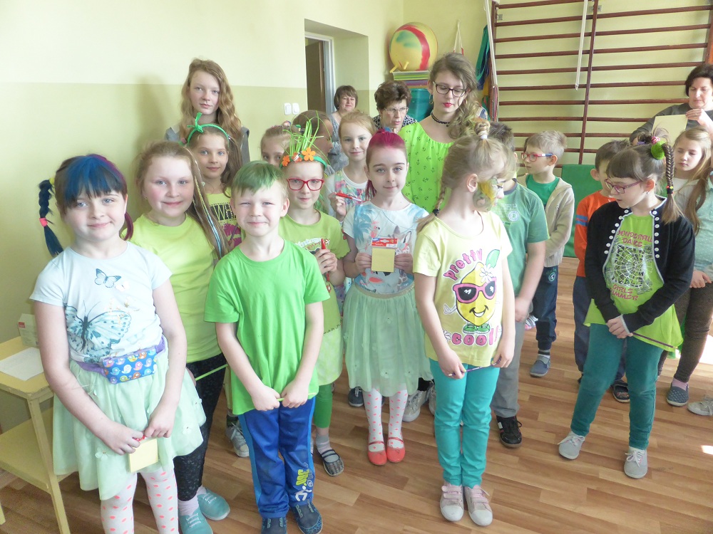 Wszystkie klasy nadejście wiosny zaakcentowały zielonym ubiorem oraz nietypowym uczesaniem. Tego dnia Samorząd Uczniowski przeprowadził konkurs pn. „Mam fryzurę na cebulę”, podczas którego wybrani zostali uczniowie z najbardziej wiosenną fryzurą. W kategorii klas I-III zwycięzcami zostali: Hania Twardzik, Antosia Niewolik i Krzyś Kujbida, a w kategorii klas IV-VI: Julia Proksz, Kinga Seget i Wiktoria Poręba. Pozostałe „szalone” uczesania także zdobyły uznanie jury i podczas krótkiego apelu przedstawicielki SU wręczyły drobne nagrody – upominki wszystkim właścicielom nietuzinkowych fryzur, a zdobywcom pierwszych trzech miejsc pamiątkowe dyplomy.