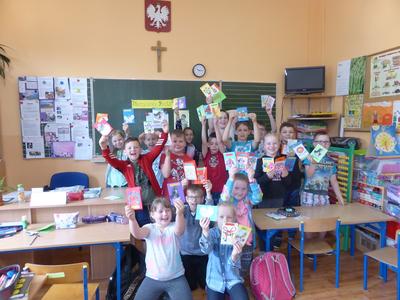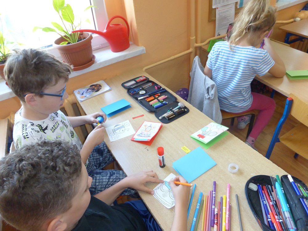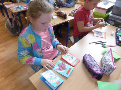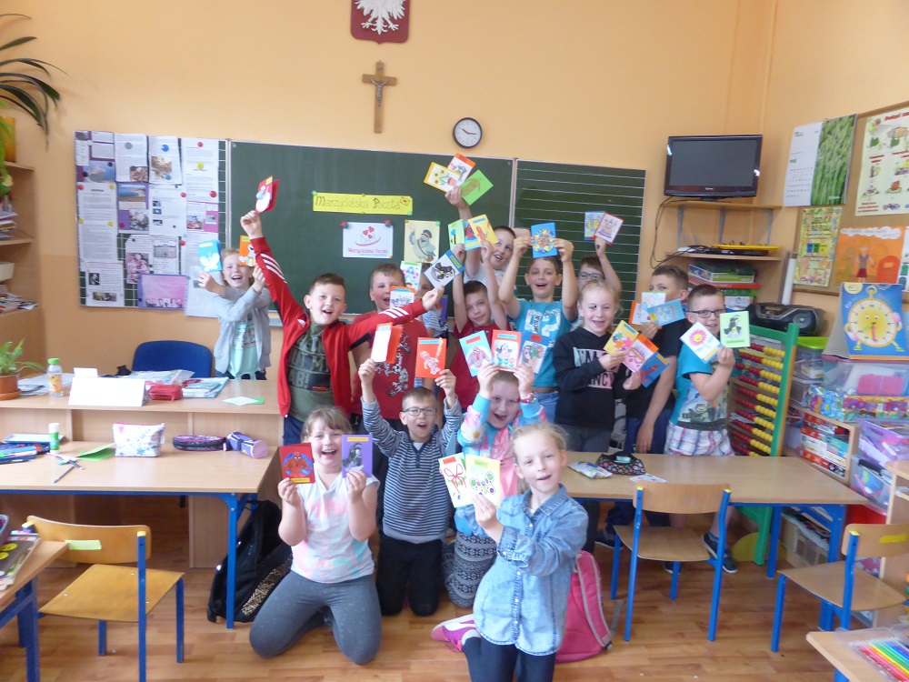 Po raz kolejny włączyliśmy się do akcji „Marzycielska Poczta”. Tym razem postanowiliśmy napisać kolorowe kartki dla Mateusza, który wkrótce obchodzić będzie swoje urodziny. Uczniowie klasy III najpierw wysłuchali z uwagą na czym polega akcja i zapoznali się z profilem swojego rówieśnika. Dowiedzieli się, że Mateusz tak jak oni lubi Spidermana, piłkarza Roberta Lewandowskiego, gry planszowe oraz zabawy z kolegami. Pomimo, że porusza się na wózku inwalidzkim jest pogodnym i radosnym chłopcem, który innych zaraża swoim optymizmem. Nasi uczniowie z przejęciem i dużym zaangażowaniem zabrali się do pracy. Wykonali wiele kolorowych i ciekawych kartek. Na koniec wspólnie zredagowaliśmy życzenia urodzinowe. Z pewnością będziemy kontynuować pisanie kartek ponieważ akcja wzbudza dużo pozytywnych uczuć i uczy empatii.