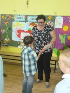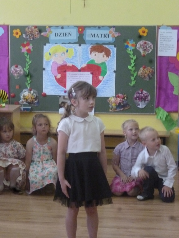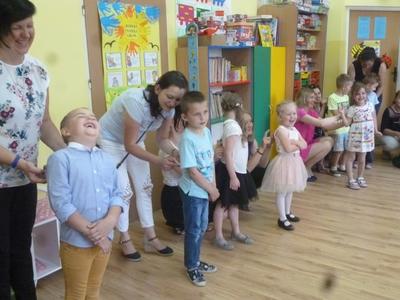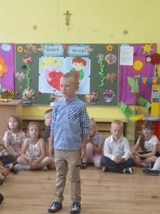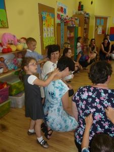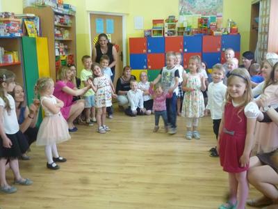 25 maja w przeddzień Dnia Matki w naszym przedszkolu odbyła się uroczystość, na którą przybyły mamy naszych przedszkolaków. Wysłuchały one wierszy i piosenek w wykonaniu swoich pociech, a następnie miały okazję wziąć udział we wspólnych zabawach oraz poczęstunku i rozmowach przy stole. Przy tej okazji dzieci obdarzyły swoje mamy wykonanymi przez siebie laurkami i uściskami.
