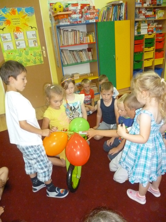 W środę i w piątek dzieci uczestniczyły w tańcach, zawodach sportowych na sali gimnastycznej oraz w zabawach ruchowych na placu zabaw i w ogrodzie. Wiele radości sprawiły przedszkolakom nowe zabawki, kolorowe balony i bańki mydlane. Nie zabrakło również lodów, które podarowali dzieciom ich rodzice. 1 czerwca odbył się w przedszkolu Dzień Otwarty, odwiedziły nas nowo przyjęte przedszkolaki wraz z rodzicami. Z okazji Dnia Dziecka życzymy wszystkim dzieciom dużo zdrowia, radości i bezpiecznych zabaw.