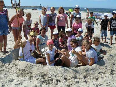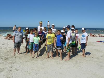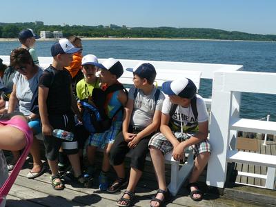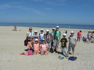 Wczesnym rankiem 22.05 wyruszyliśmy w podroż nad morze. Jechaliśmy ok. 12 godzin. Zmęczeni dotarliśmy na miejsce, do pensjonatu „Pod różą”, zostaliśmy zakwaterowani w pokojach, a następnie udaliśmy się na kolację, a po niej do łóżek. Następnego dnia rano poszliśmy przywitać morze, widok był wspaniały. Świetnie bawiliśmy się na plaży oraz z pewną nieśmiałością stawialiśmy stopy w wodzie.