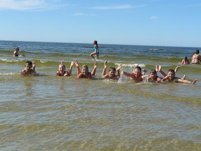 W czasie całego pobytu świetnie się czuliśmy, wdychaliśmy świeże powietrze, apetyty wzrastały w miarę naszego pobytu. Pluskaliśmy się w morzu i zawiązywaliśmy nowe przyjaźnie.