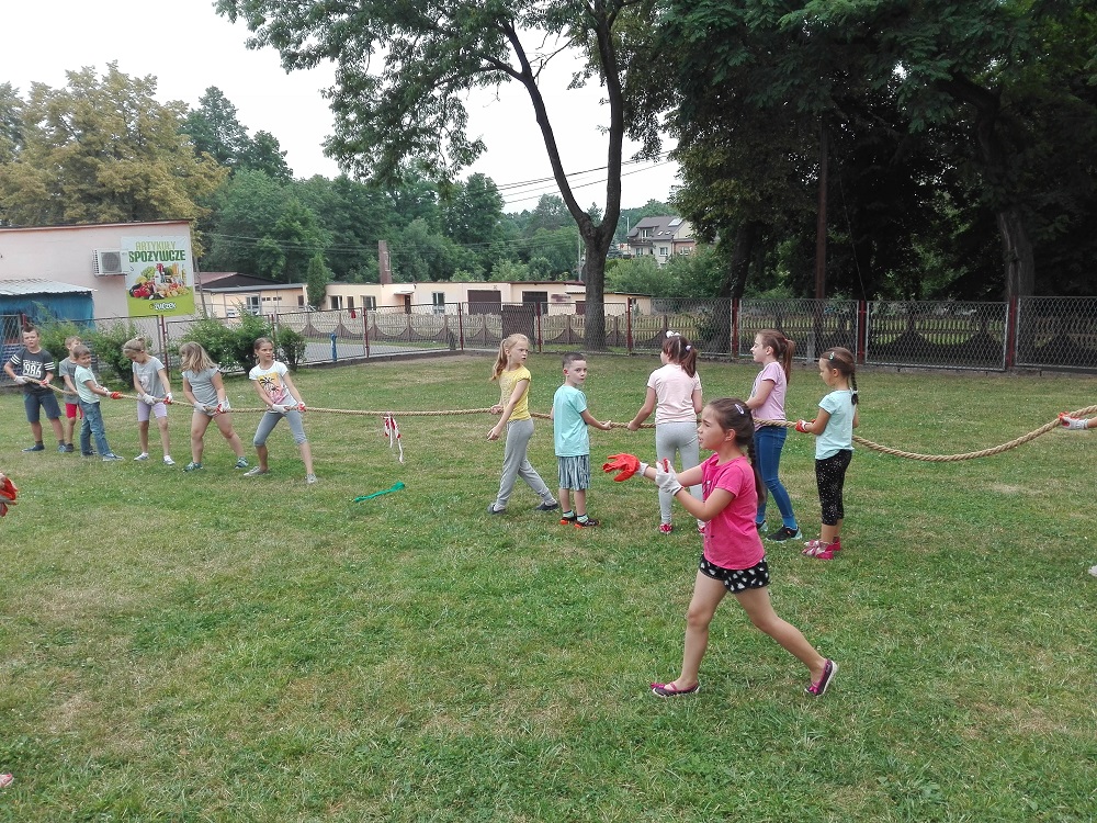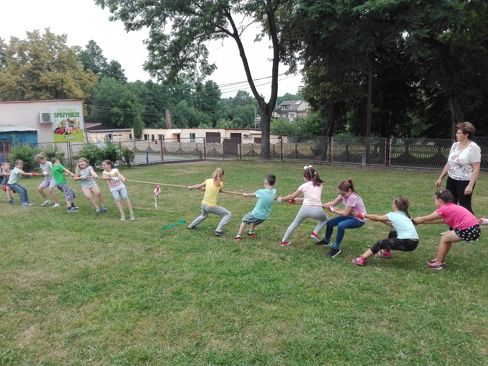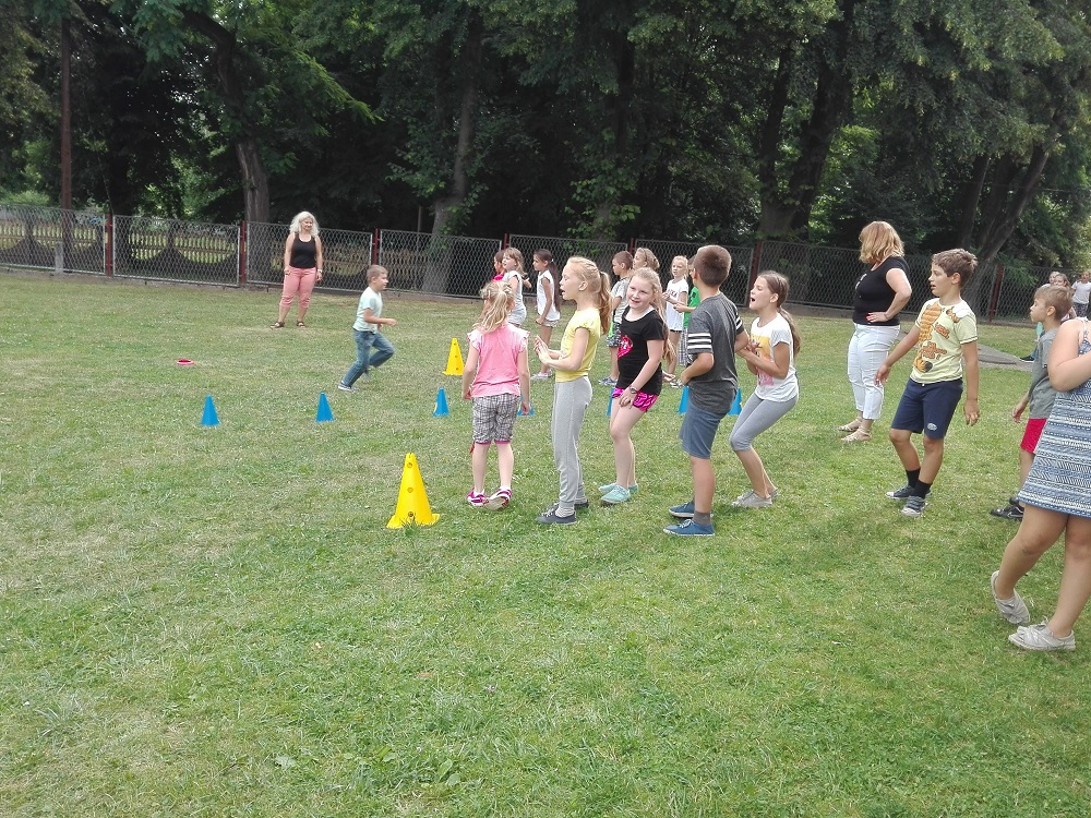 W środę 20.06.2018r. zorganizowane zostały rozgrywki sportowe oraz zabawy na świeżym powietrzu w ramach szkolnego dnia sportu. Uczniowie klas młodszych spróbowali swoich sił w przeciąganiu liny, torze przeszkód, w rzucaniu do celu oraz piłce parzy i ringo. Starsze klasy natomiast rywalizowały w turnieju piłki nożnej. Dziewczynki chętnie zasiliły drużyny sportowe i z zapałem brały udział w rozgrywkach. Z każdym meczem było coraz więcej emocji i kibicowania. W kończącym się roku szkolnym była to dobra okazja do uśmiechu i zabawy.