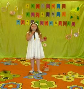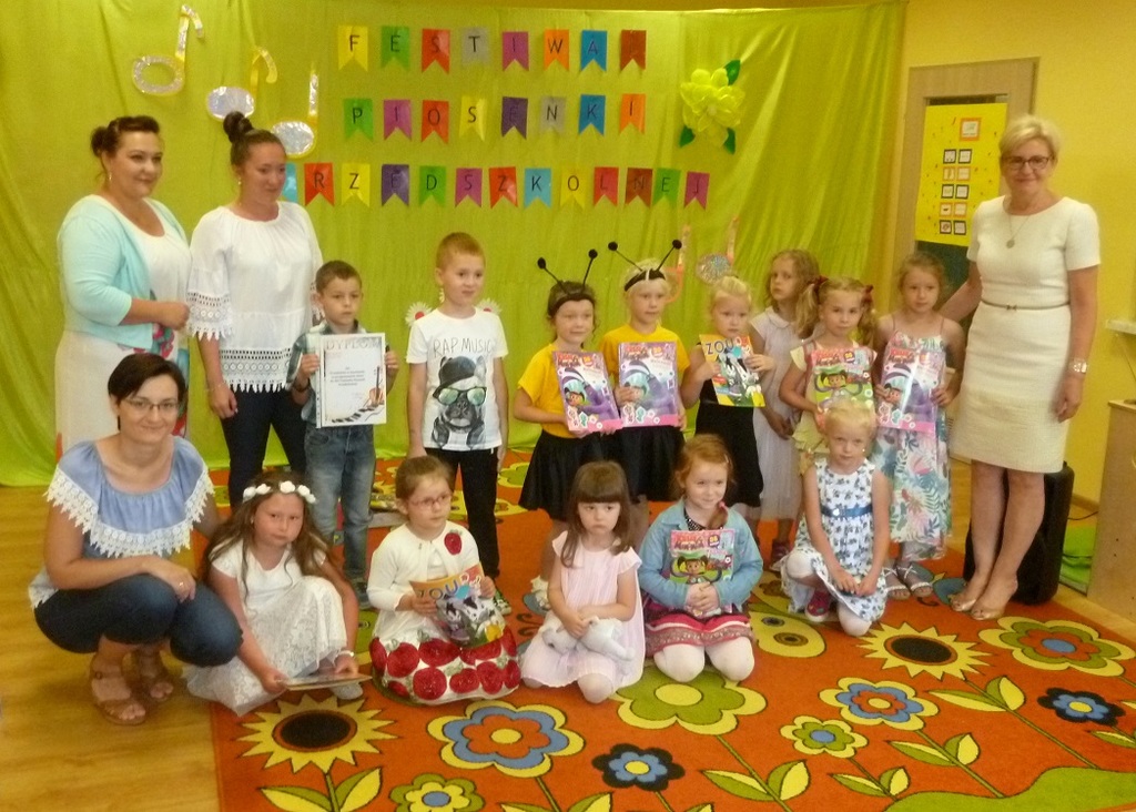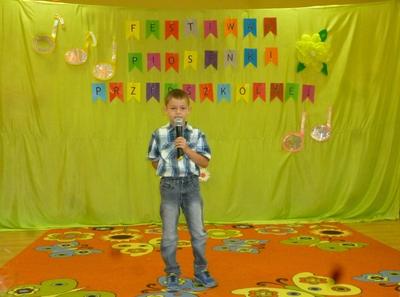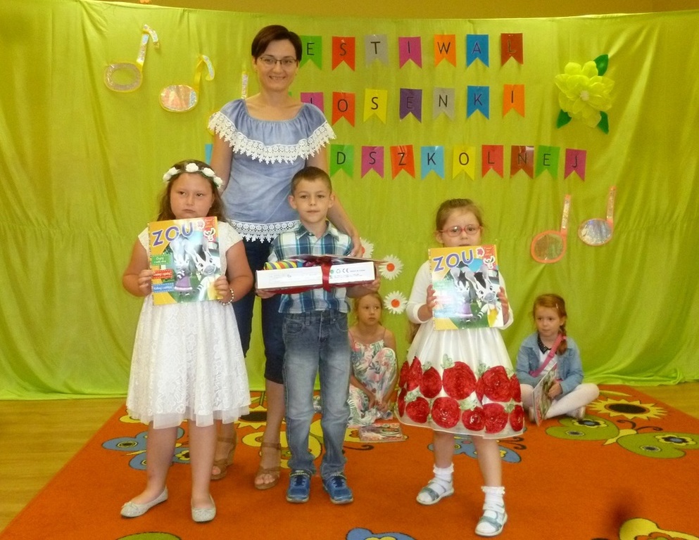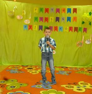 13 czerwca 2018 r. Wiktoria Zabrocka, Gabriela Jenderko i Bartłomiej Panic reprezentowali nasze przedszkole na XIV Festiwalu Piosenki Przedszkolnej "Śpiewać każdy może", który obył się w Przedszkolu w Kobyli. Celem konkursu była popularyzacja piosenki przedszkolnej, wyzwalanie u dzieci radości śpiewania, prezentacja umiejętności dzieci, zachęcanie do występów na scenie oraz rozwijanie współpracy pomiędzy przedszkolami naszej gminy. Wiktoria Zabrocka zaśpiewała piosenkę "Czerwone jabłuszko", Gabrysia Jenderko "Maszeruje wiosna" a Bartłomiej Panic - "Kocham Cię, Ti Amo, Je T'aime".