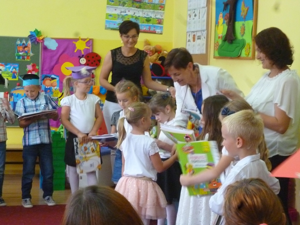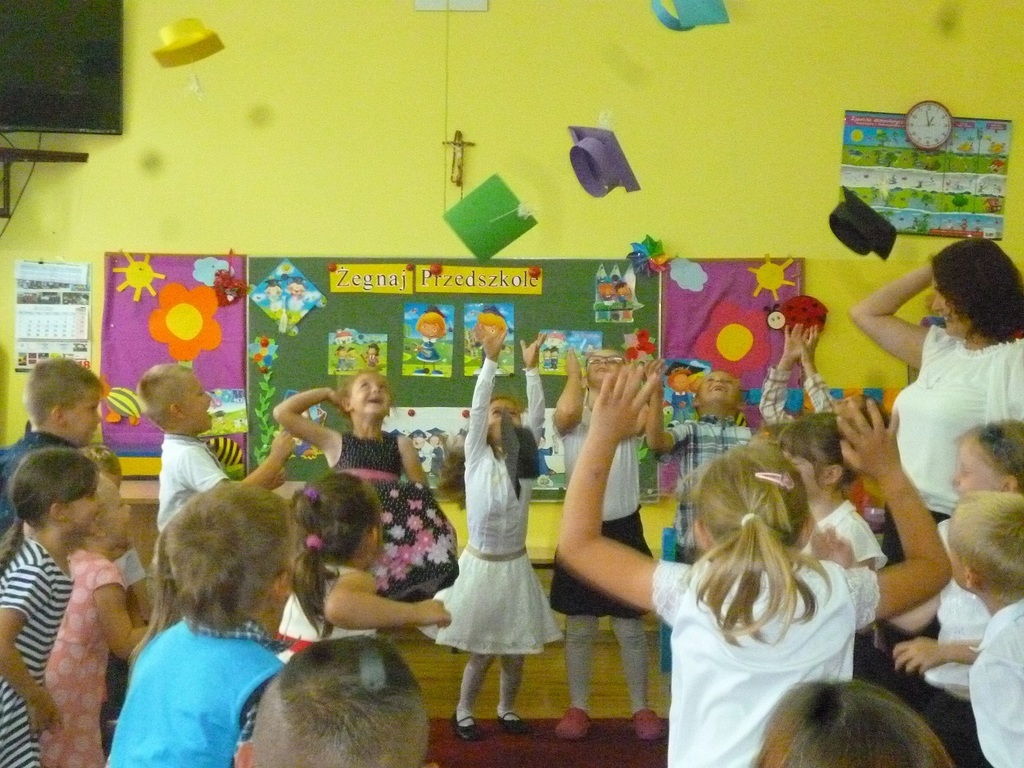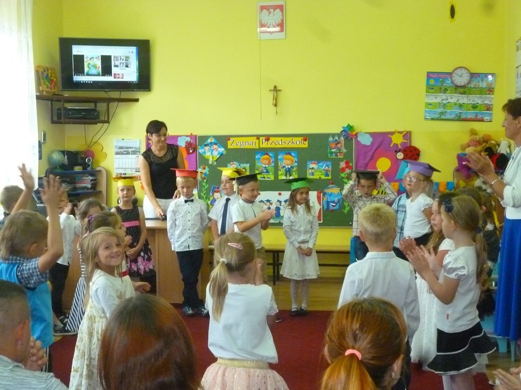 22 czerwca 2018 roku w naszym przedszkolu odbyło się uroczyste zakończenie roku szkolnego. Młodsze dzieci pożegnały starszaków, które od września rozpoczną naukę w szkole podstawowej. Starsze dzieci podziękowały młodszym za wspólnie spędzony czas i miłe zabawy. Następnie dzieci wykazały się wiedzą dotyczącą zasad bezpieczeństwa na wakacjach. Na koniec wszystkie dzieci otrzymały pamiątkowe książki, dyplomy, tabla oraz gazetkę "Przedszkolaczek". W nagrodę za udział w konkursie "Zbieramy plastikowe nakrętki" wszystkie przedszkolaki otrzymały piłki, które umilą im wakacyjną zabawę. Wszystkim dzieciom życzymy radosnych, pełnych wrażeń, ale przede wszystkim bezpiecznych, wakacji.