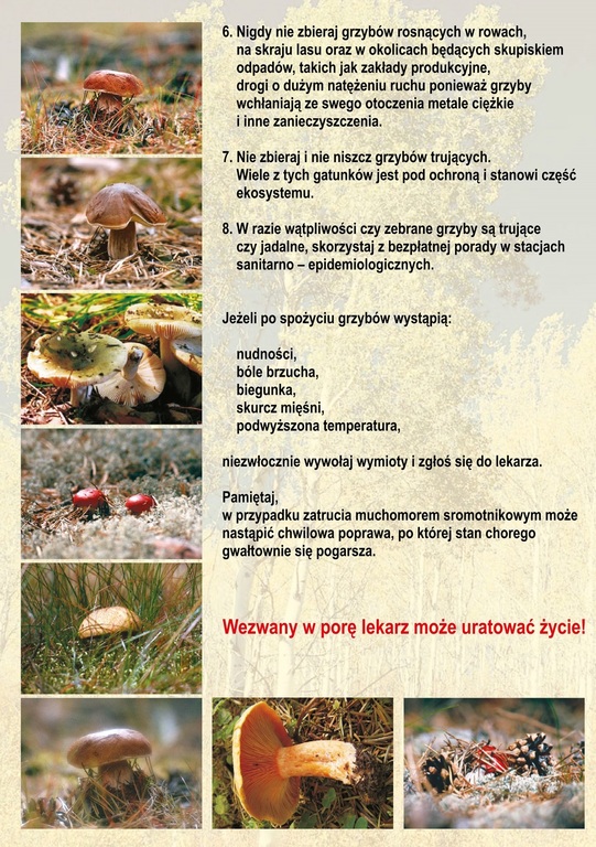 Jeżeli po spożyciu grzybów masz nudności, bóle brzucha, biegunkę, skurcze mięśni, podwyższoną temperaturę niezwłocznie wywołaj wymioty i zgłoś się do lekarza!