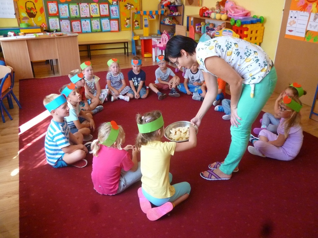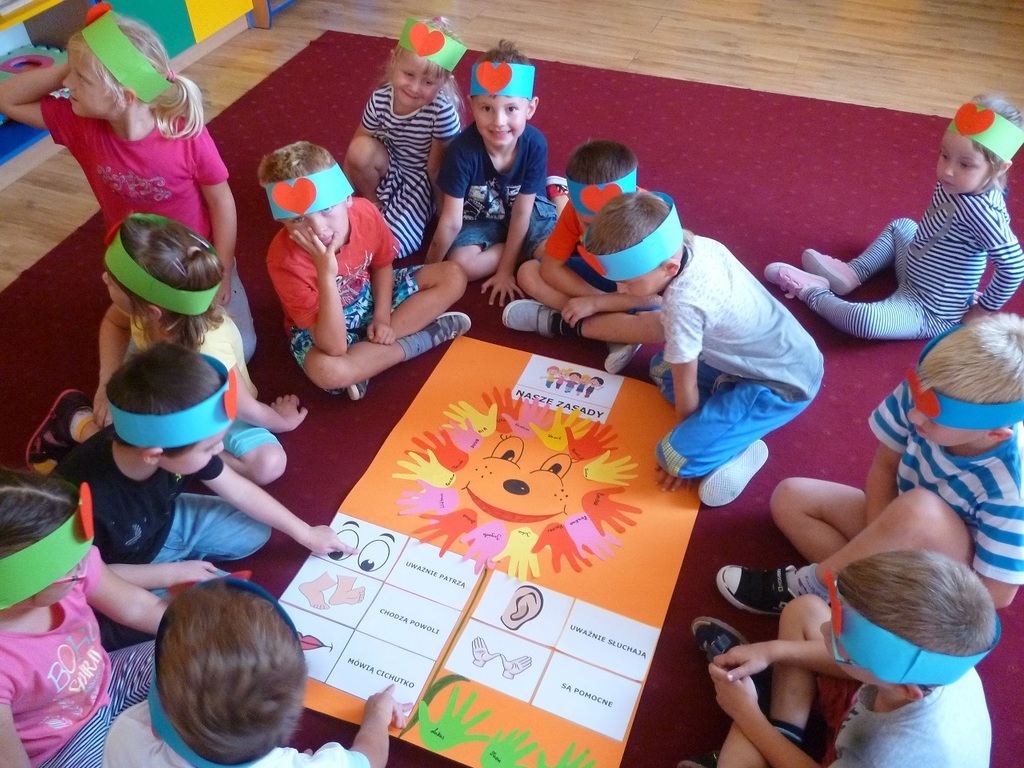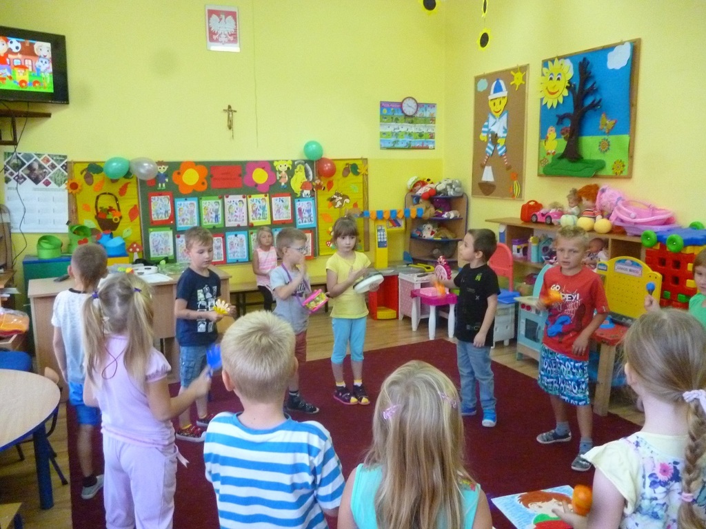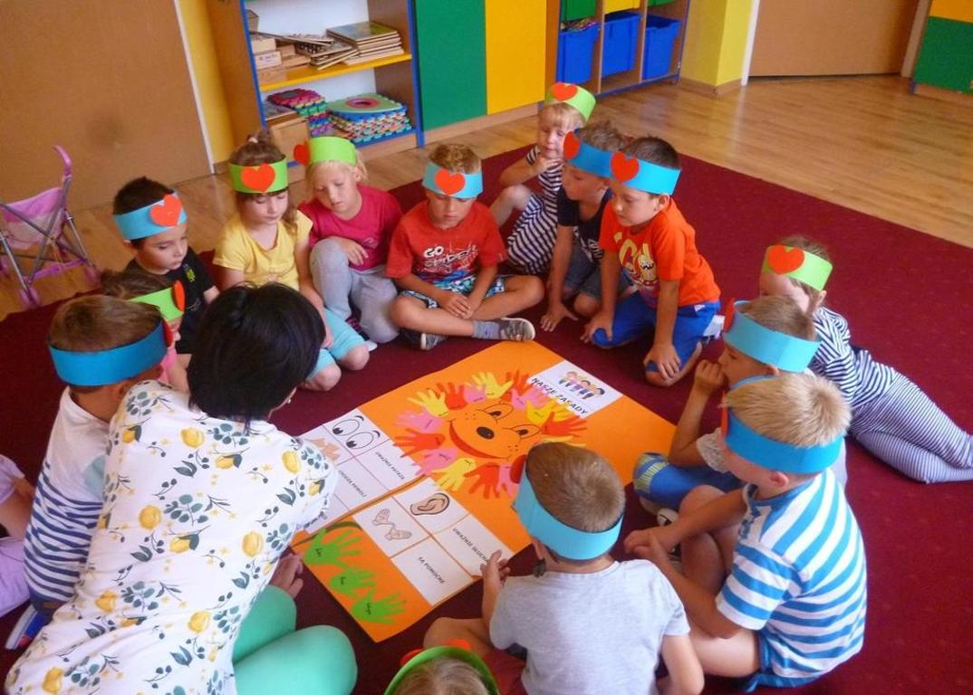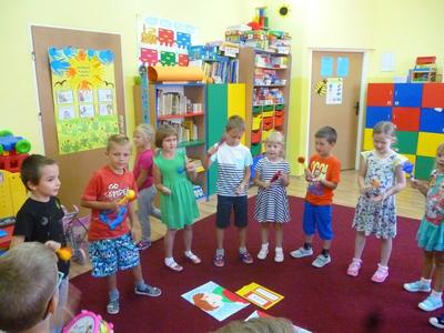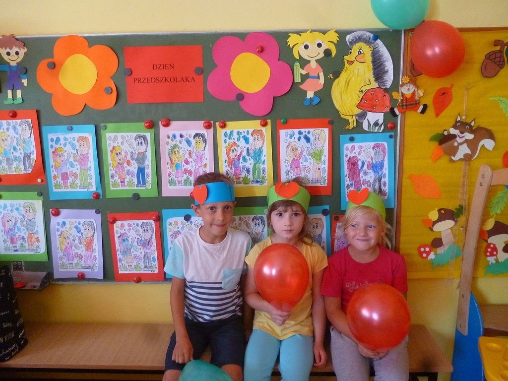 W Dniu Przedszkolaka, który przypada na 20 września, nasze dzieci zapoznały się z kodeksem grupy. Akceptując obowiązujące w przedszkolu zasady, obrysowały swoje rączki i wycięte z kolorowego papieru przylepiły na plakacie. Przeanalizowały dokładnie reguły, do których należy się stosować w przedszkolu. Należą do nich m.in.: przestrzeganie zasad bezpieczeństwa, dbanie o swoje rzeczy i zabawki, zgodna zabawa z innymi i dzielenie się zabawkami, sprzątanie po zabawie, kulturalne zachowanie podczas posiłków i uważne słuchanie podczas zajęć. Dzieci zaśpiewały piosenkę "Jestem sobie przedszkolaczek" i wystukiwały do niej rytm na instrumentach perkusyjnych. Z zapałem wykonywały prace plastyczne w grupach, a następnie radośnie bawiły się na placu zabaw. Przy tej okazji przedszkolaki otrzymały ordery uśmiechu oraz balony, które również sprawiły im wiele radości. Po południu dzieci wysłuchały opowiadania "Moje przedszkole". Uczestniczyły w zabawach w kole, śpiewały piosenki "Na powitanie" i "Smok Rock"oraz tańczyły z balonami do piosenki "Krasnoludki". Dzień Przedszkolaka dzieci zakończyły słodkim poczęstunkiem w postaci świeżych owoców.