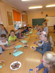1 października podczas krótkiego apelu wszystkie dziewczynki zaśpiewały naszym małym mężczyznom STO LAT! Zastępczyni przewodniczącego SU poczęstowała z tej okazji wszystkie dzieci czekoladowymi cukierkami.