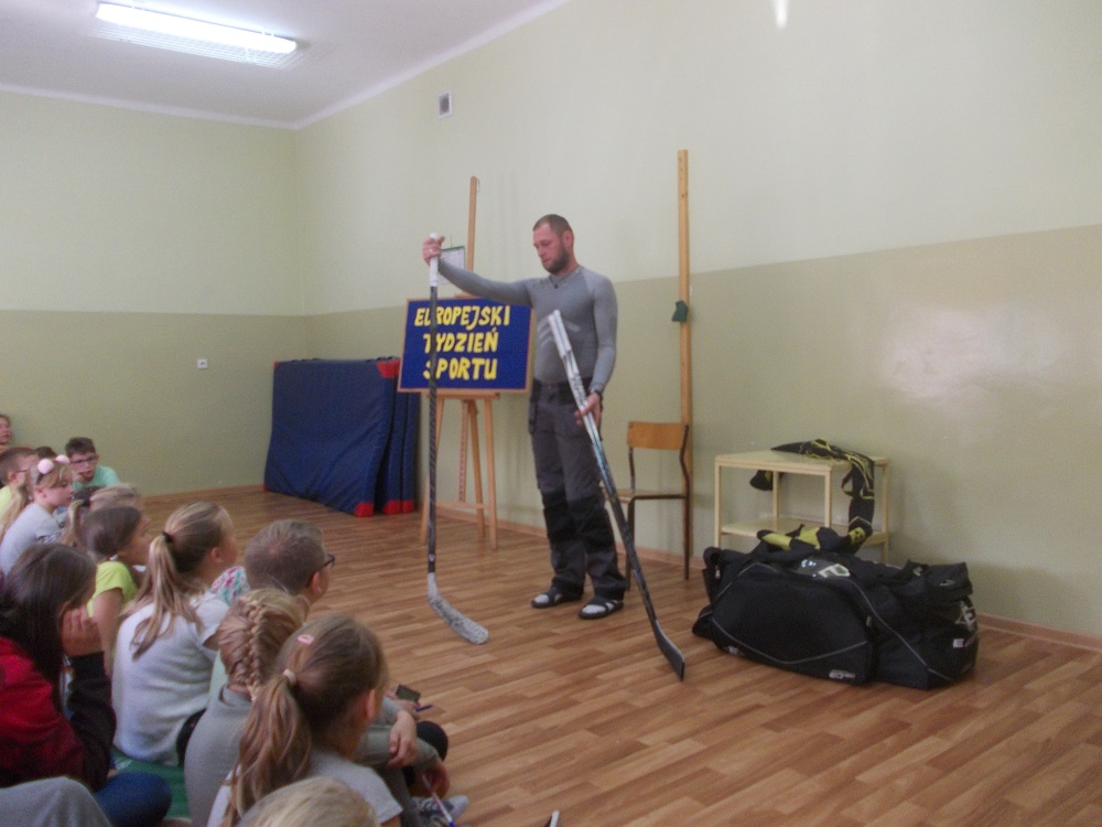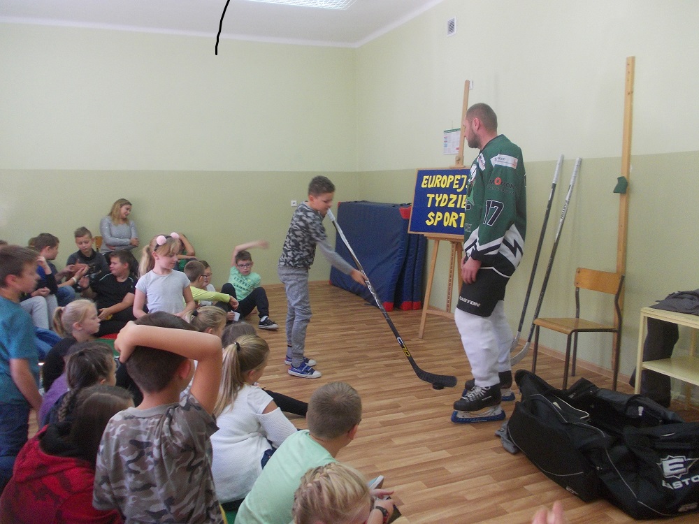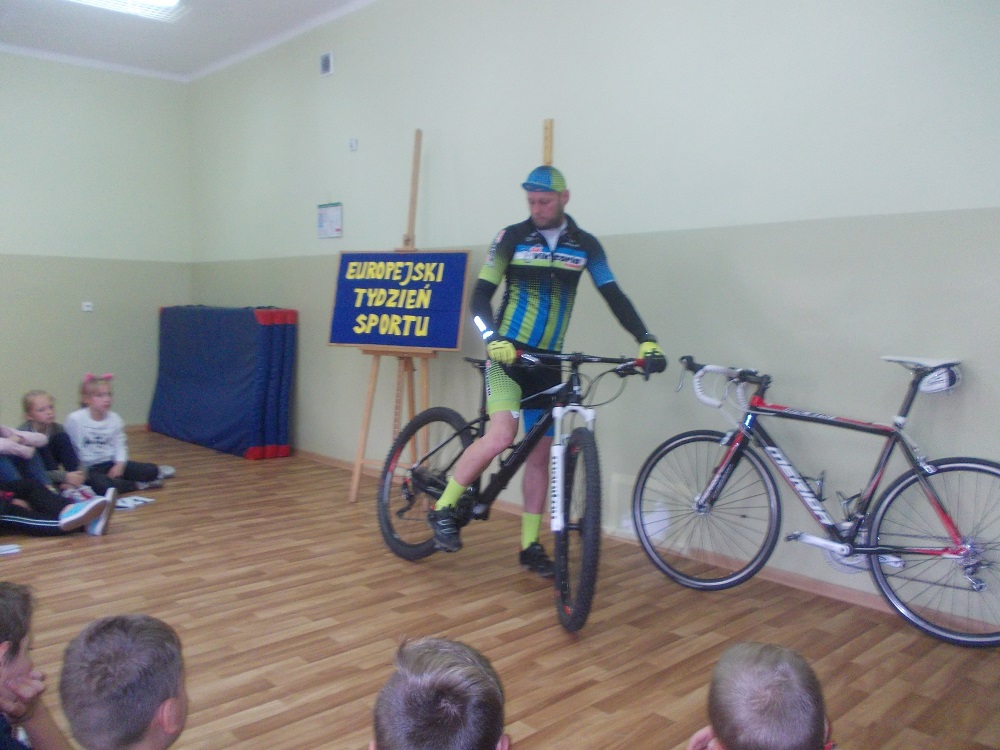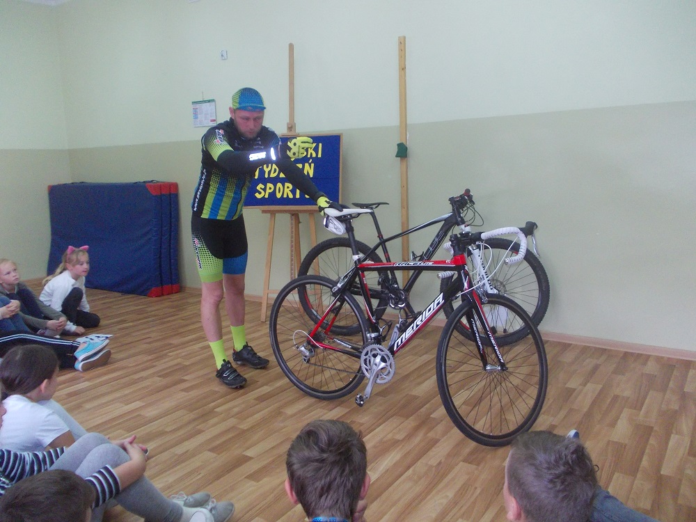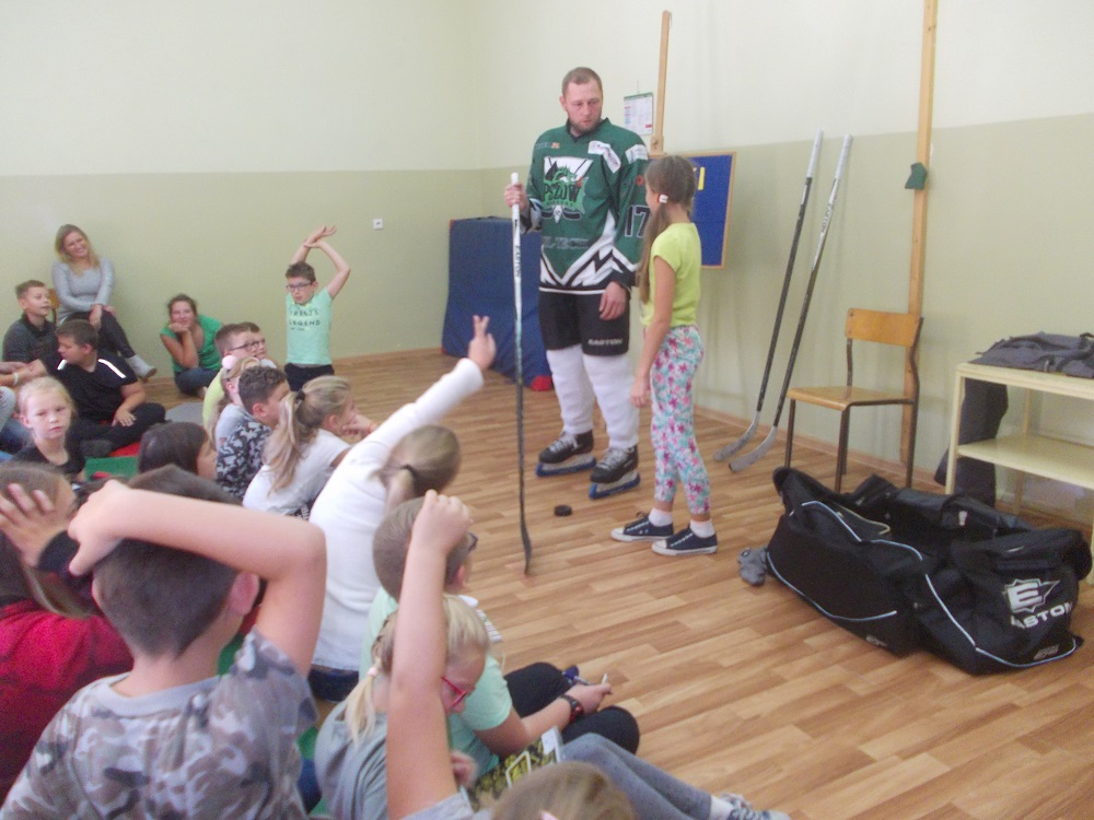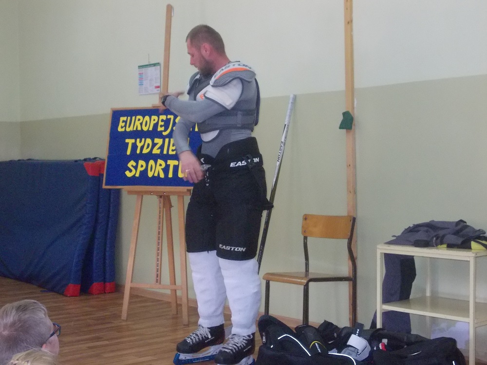 W kolejnych dniach, to jest 27 i 28 września, swoimi pasjami sportowymi, a mianowicie kolarstwem i hokejem na lodzie zachwycił dzieci pan Marcin Drzeniek - pracownik naszej szkoły. Opowiadał on o rodzajach rowerów do jazdy treningowej, stroju kolarskim, sposobach porozumiewania się kolarzy między sobą podczas jazdy - sygnałach i znakach w formie gestów pomocnych w bezpiecznej jeździe. Przedstawił ciekawostki o zawodach kolarskich, przygotowaniach do nich, poruszył temat odżywianiazawodnika. Ogromnym zainteresowaniem cieszył się strój hokeisty i sposób jego zakładania.Pan Marcin reprezentuje Klub Kolarski Viktoria w Rybniku oraz HokejowyDragons w Pszowie. Naszemu gościowi również bardzo dziękujemy i życzymy wielu sukcesów w nadchodzącym sezonie na tafli lodowej.