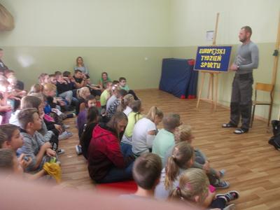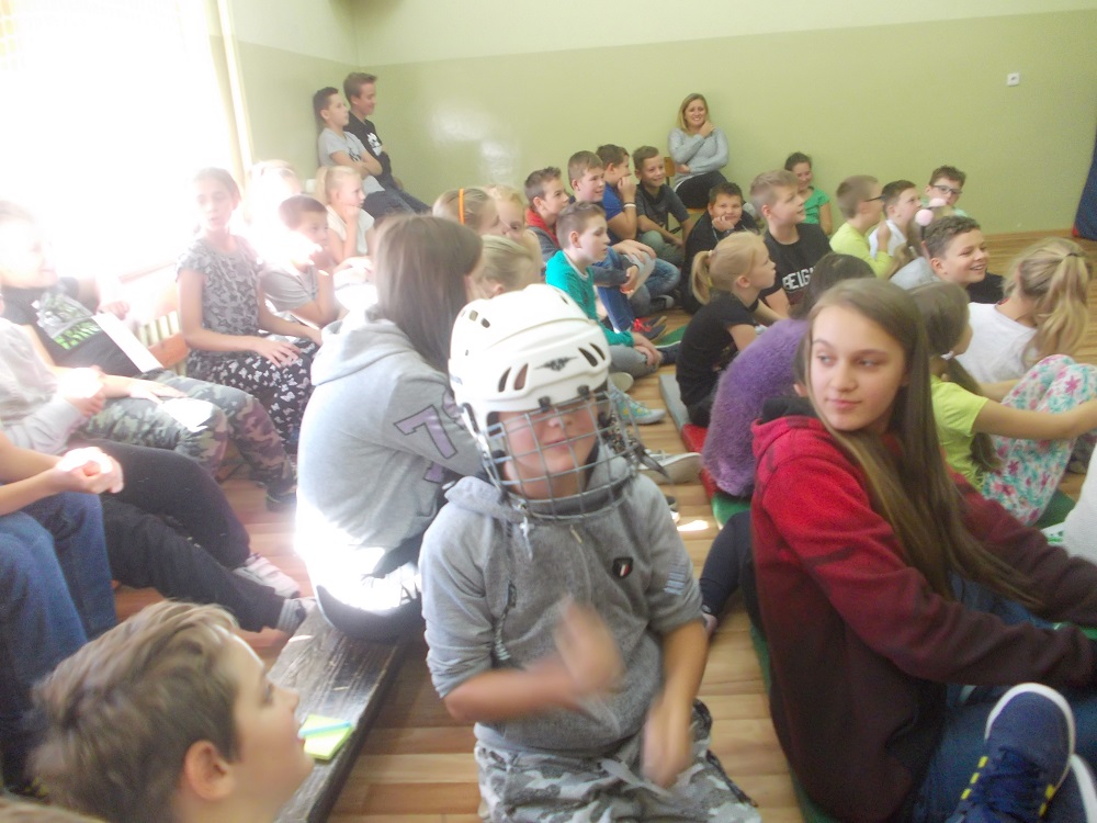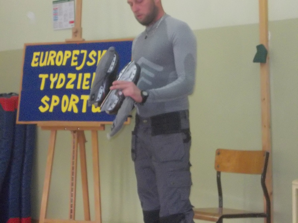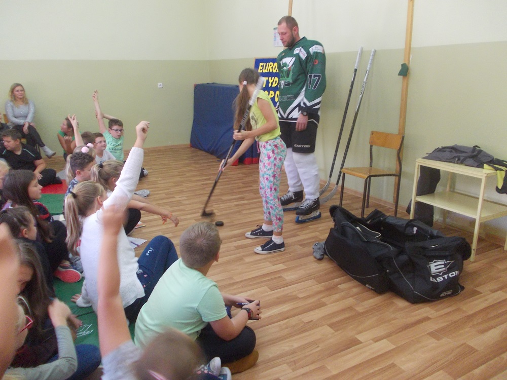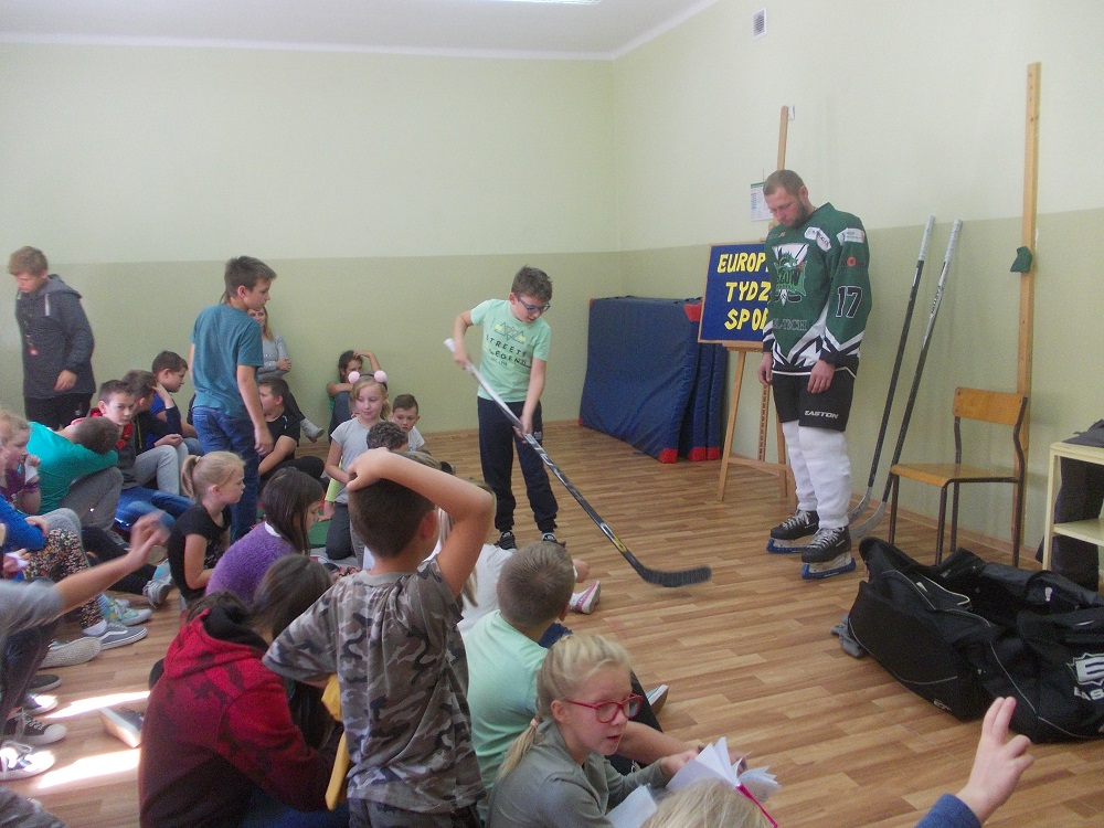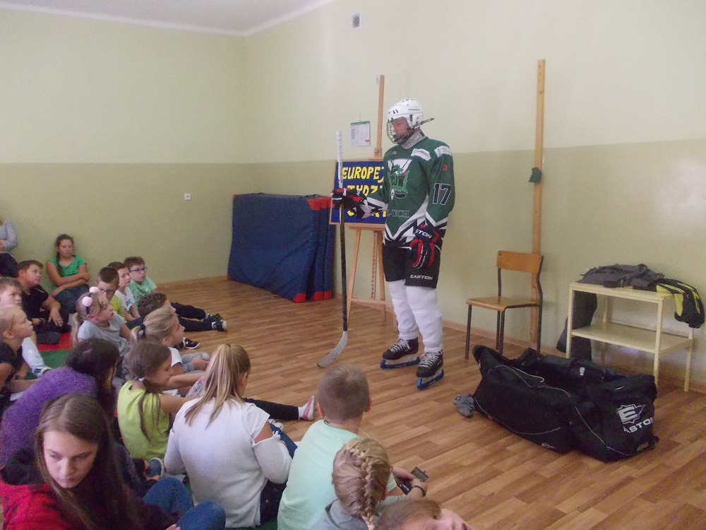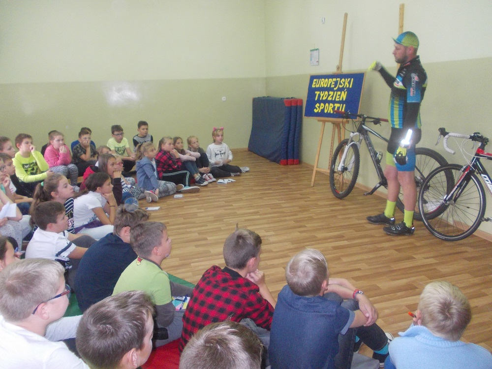 W kolejnych dniach, to jest 27 i 28 września, swoimi pasjami sportowymi, a mianowicie kolarstwem i hokejem na lodzie zachwycił dzieci pan Marcin Drzeniek - pracownik naszej szkoły. Opowiadał on o rodzajach rowerów do jazdy treningowej, stroju kolarskim, sposobach porozumiewania się kolarzy między sobą podczas jazdy - sygnałach i znakach w formie gestów pomocnych w bezpiecznej jeździe. Przedstawił ciekawostki o zawodach kolarskich, przygotowaniach do nich, poruszył temat odżywianiazawodnika. Ogromnym zainteresowaniem cieszył się strój hokeisty i sposób jego zakładania.Pan Marcin reprezentuje Klub Kolarski Viktoria w Rybniku oraz HokejowyDragons w Pszowie. Naszemu gościowi również bardzo dziękujemy i życzymy wielu sukcesów w nadchodzącym sezonie na tafli lodowej.