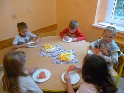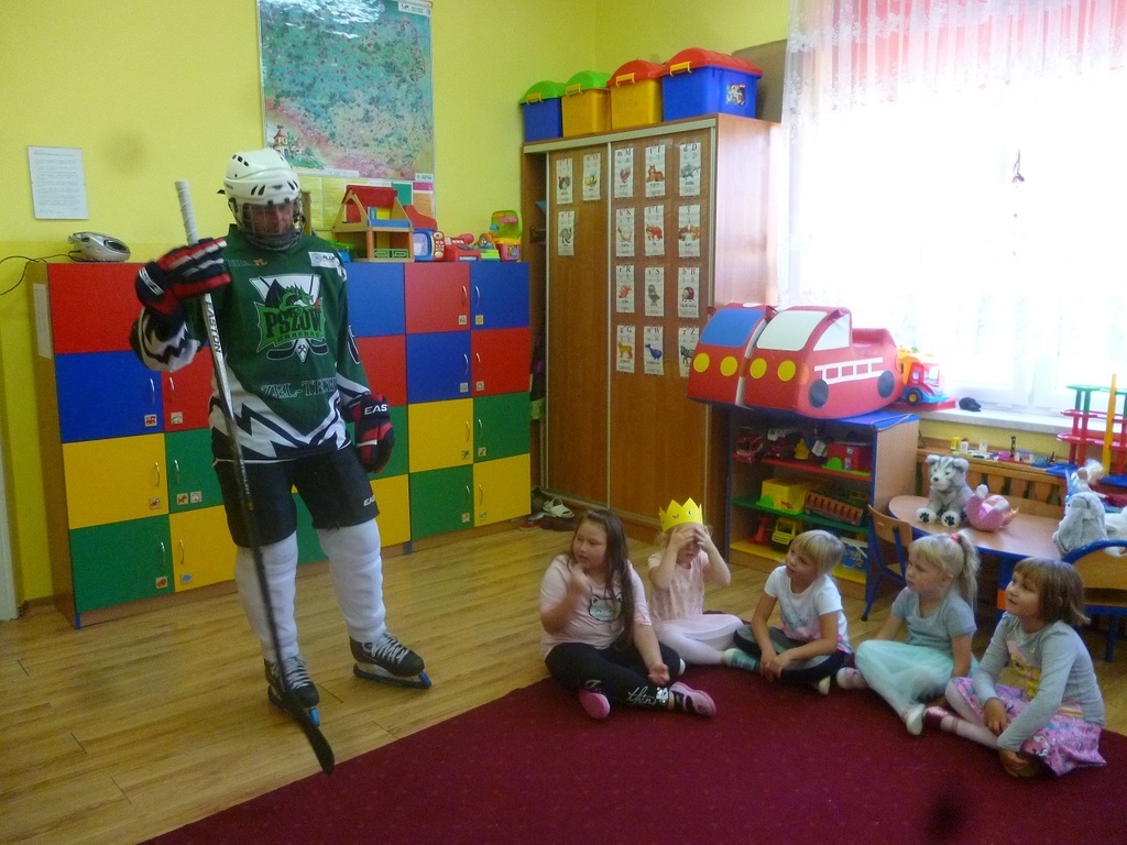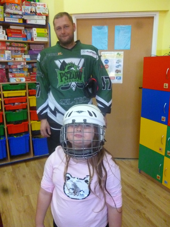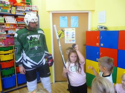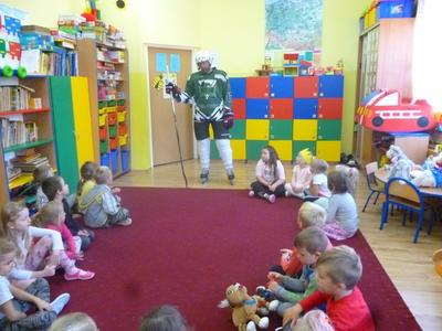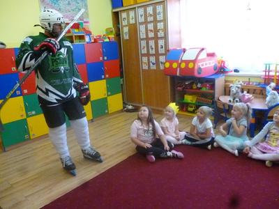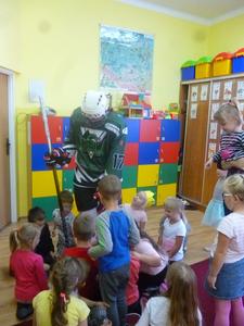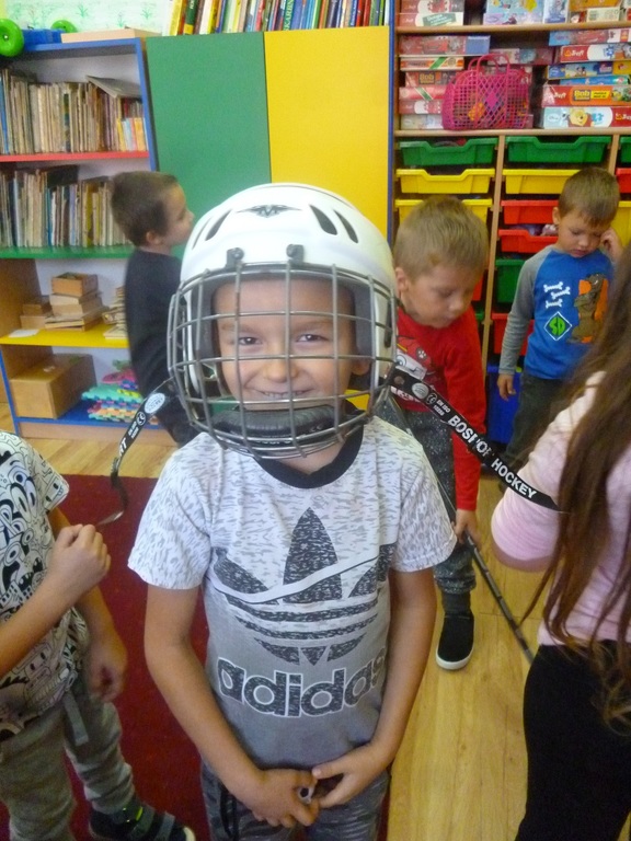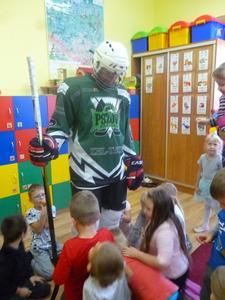 Dzień Chłopca w naszym przedszkolu obchodziliśmy w piątek 28 września. Z tej okazji dziewczynki zaśpiewały kolegom "Sto lat", wręczyły ordery "Super chłopaka" i drobne upominki. Nie zabrakło też tańców do lubianych przez dzieci utworów, takich jak: "Bal baloników" czy "Krasnoludki". Znalazł się również czas na poczęstunek ze świeżych owoców. Dużą niespodzianką zarówno dla chłopców jak i dla dziewczynek była wizyta hokeisty, pana Marcina z drużyny Dragons Pszów. Przedszkolaki miały okazję zobaczyć jak wygląda profesjonalny strój hokeisty oraz przymierzyć kask ochronny. Ten wyjątkowy dzień dostarczył nam wielu wrażeń i upłynął w bardzo miłej atmosferze.