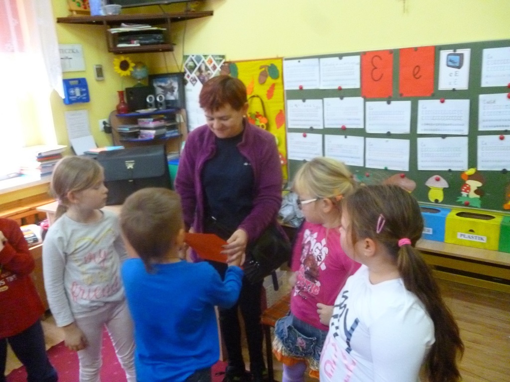 18 października listonosze obchodzą swoje święto. Korzystając z tej okazji zaprosiliśmy do przedszkola panią Krysię, która opowiedziała nam o swojej pracy, wyjaśniła znaczenie znaczka charakterystycznego dla poczty oraz odpowiedziała na pytania przedszkolaków. Pozwoliła również chętnym dzieciom zmierzyć się z ciężką torbą oraz przymierzyć służbową czapkę. I jak zawsze obdarowała dzieci niespodziankami. Dzieci podziękowały pani listonosz wręczając laurkę oraz prezentując nabyte w przedszkolu umiejętności. Życzymy wszystkim listonoszom dużo zdrowia i siły, które z pewnością są im potrzebne w wykonywaniu ich trudnej pracy.