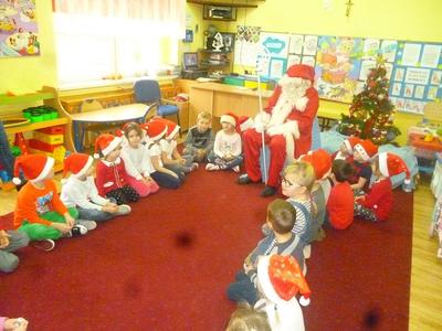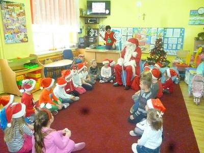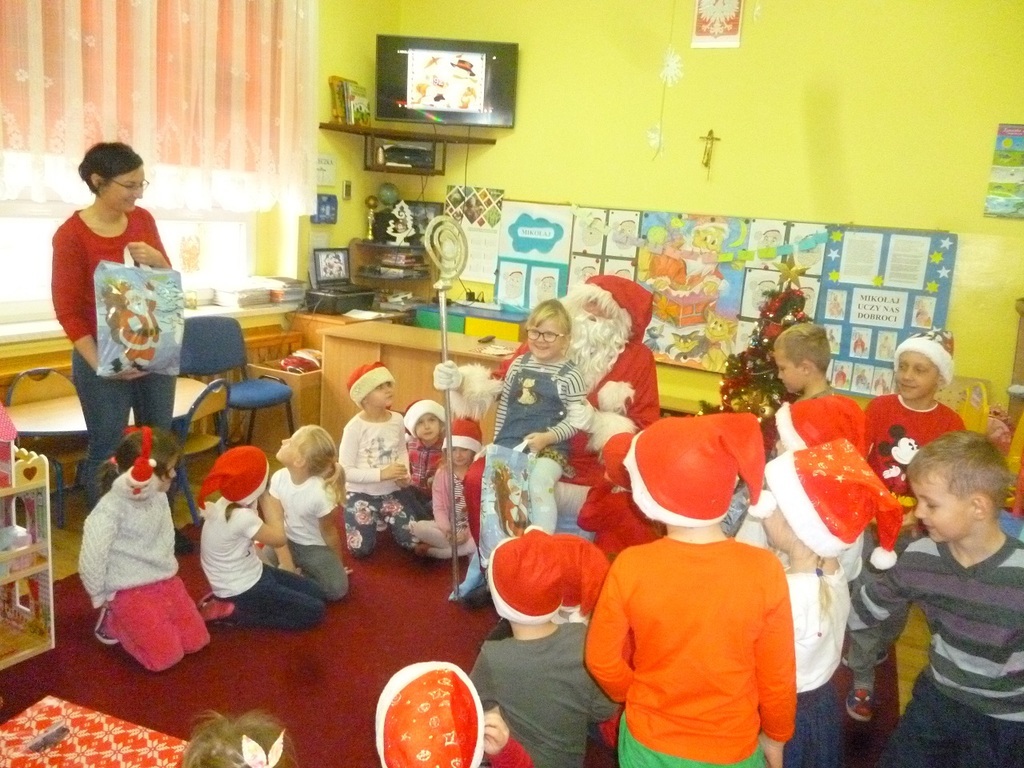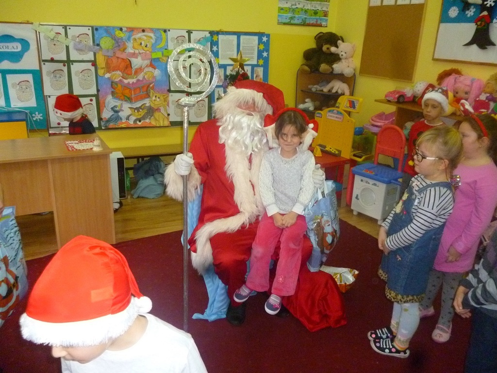 Tradycyjnie 6 grudnia nasze przedszkole odwiedził wyjątkowy gość, Święty Mikołaj. Dzieci z radością wyczekiwały tego dnia, przygotowały piosenki i wierszyki oraz włożyły mikołajowe czapki. Kiedy po śniadaniu usiedliśmy w kole i usłyszeliśmy dzwoneczki mikołajowych sań, radości nie było końca. Święty Mikołaj z przyjemnością wysłuchał piosenek i wierszyków oraz opowiedział o swoich reniferach i elfach. Nasz gość podziękował za miłe powitanie, pochwalił dzieci za grzeczność i sprawdził ich wiedzę na temat Mikołaja. Dzieci opowiadały m.in. o tym, ile reniferów ma Święty Mikołaj i jak się one nazywają. Na zakończenie swojej wizyty Mikołaj wręczył dzieciom upragnione prezenty i życzył im wesołych świąt.