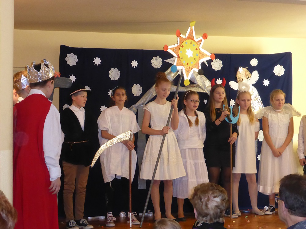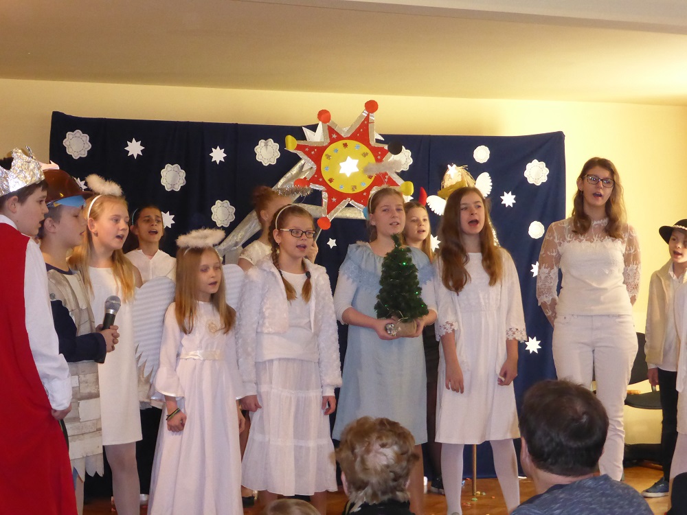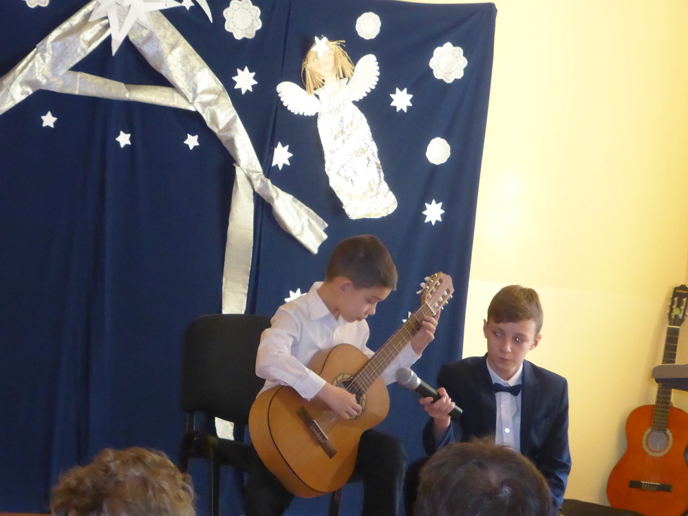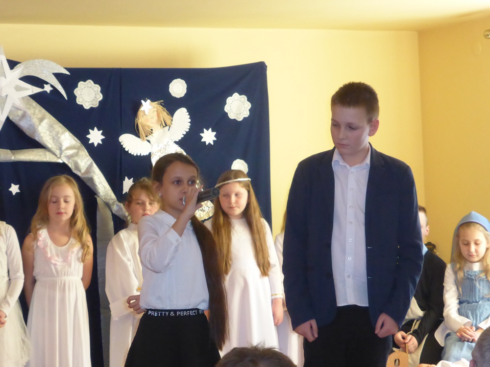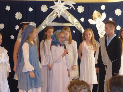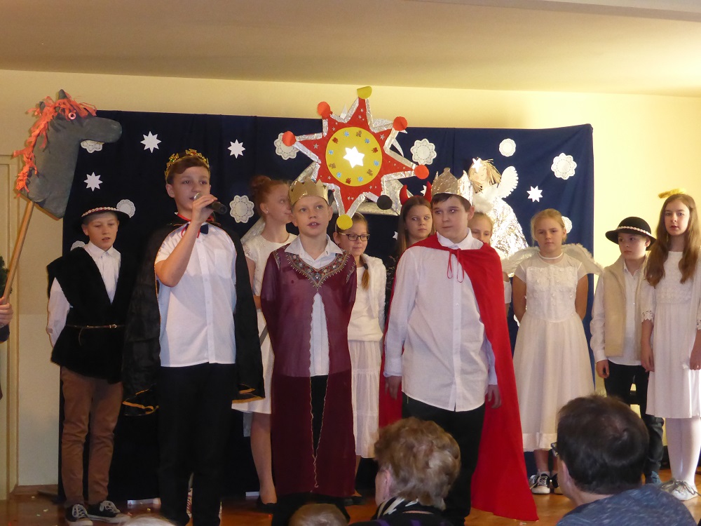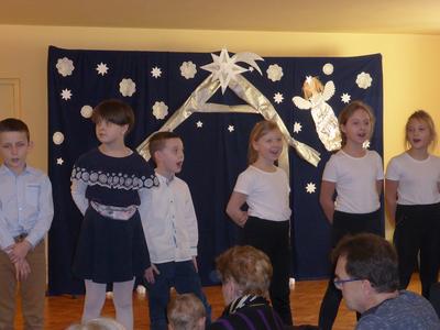 Dzień Babci i Dziadka to jedno z ważniejszych świąt i stały punkt w repertuarze imprez naszej szkoły. Styczeń to także czas, kiedy rozbrzmiewają kolędy, noworoczne pastorałki i nastój świąt jeszcze trwa. I właśnie w tym klimacie przygotowaliśmy dzisiejszą uroczystość. Wszystkim wiadomo, że Babcia i Dziadek to osoby, które pełnią istotną rolę dla wszystkich wnuków - bo kto, jak nie Dziadkowie, pocieszy, przytuli, doradzi czy uściśnie? Tak zacnych gości nie mogło zabraknąć dziś w naszej szkole. Liczne grono zaproszonych Dziadków zasiadło przy stołach zastawionych słodkim poczęstunkiem, przygotowanym przez Radę Rodziców. Pani Dyrektor rozpoczęła uroczystość i zaprosiła do obejrzenia programu, a prowadzący w klimacie nastrojowej kolędy godnie powitali zebranych i zaprosili do wspólnej zabawy. Dziadkowie mogli oglądać występy swoich wnuków w licznych kolędach, pastorałkach, przedstawieniu ,,Jasełek"oraz korowodzie kolędników. Program przeplatany był ciekawymi układami tanecznymi i solowymi występami dzieci, grających na instrumentach muzycznych. Zebrani z dumą oglądali i podziwiali swoich wnuków dziękując za występy licznymi oklaskami. Na twarzach gości było widać podziw, radość i wzruszenie. Dziękujemy wszystkim za udział, rodzicom za przygotowanie poczęstunku, a dzieciom za wspaniałe występy w programie. Było to miłe i sympatyczne spotkanie w świątecznej atmosferze. Impreza należała do udanych, a uśmiech i frekwencja były tego dowodem.